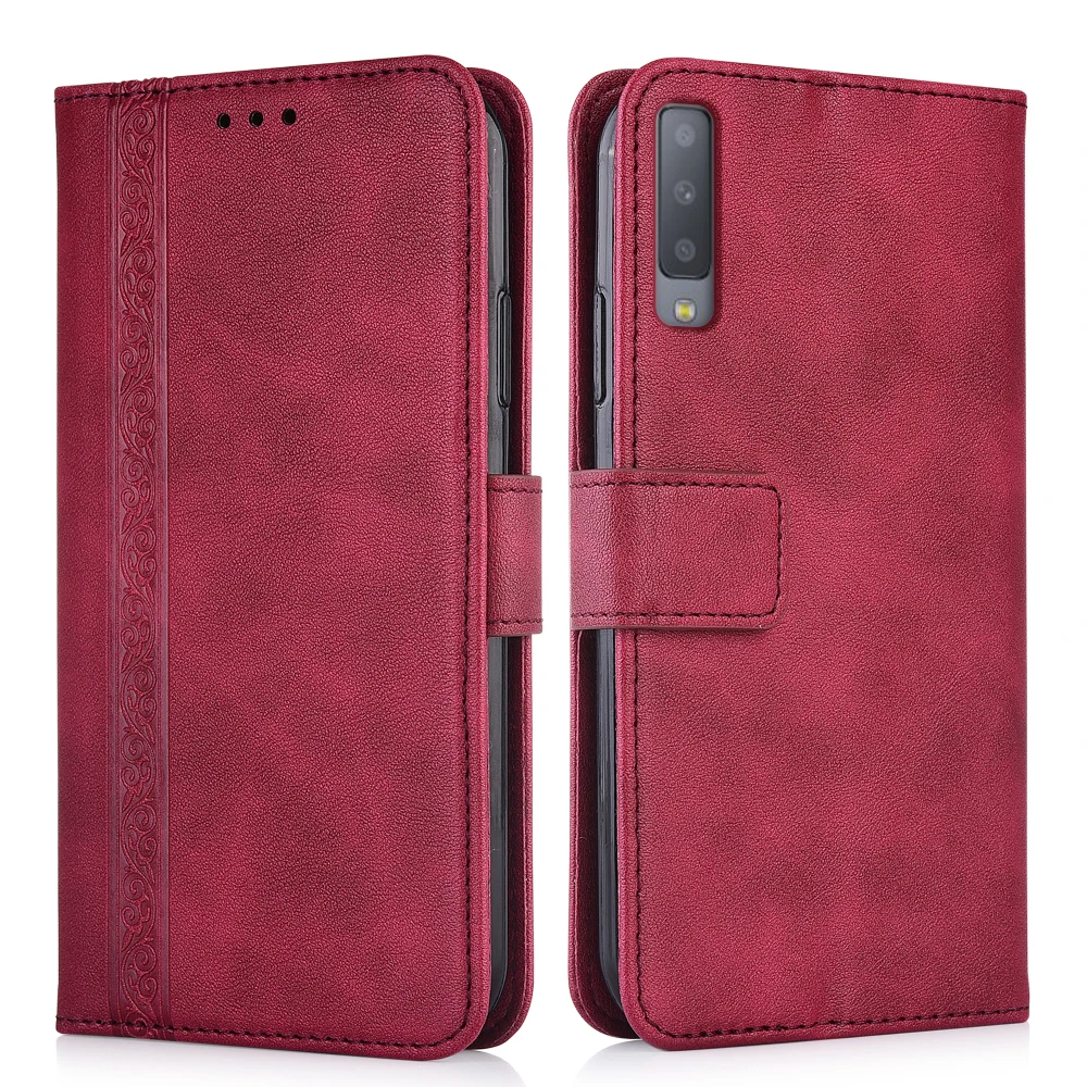 Роскошный кожаный чехол-книжка с бумажником кожаный чехол для Samsung Galaxy A7 2018 A750 A750F SM-A750FN Чехол-книжка на магните защитный чехол-накладка для телефона