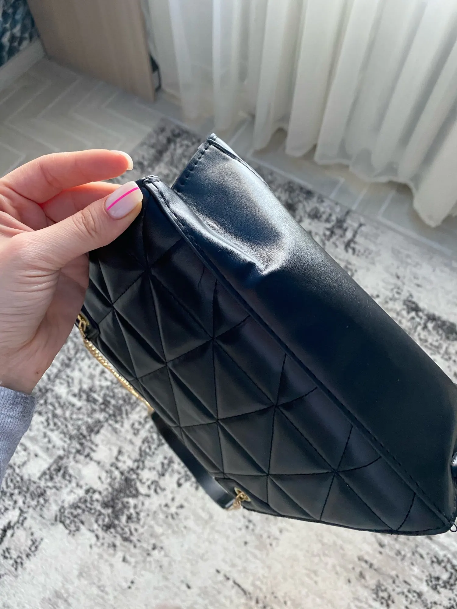 Сумка имеет немного слабый материал. Материал может быть более устойчивым, чтобы спросить qye. Цепочки также очень тонкие.