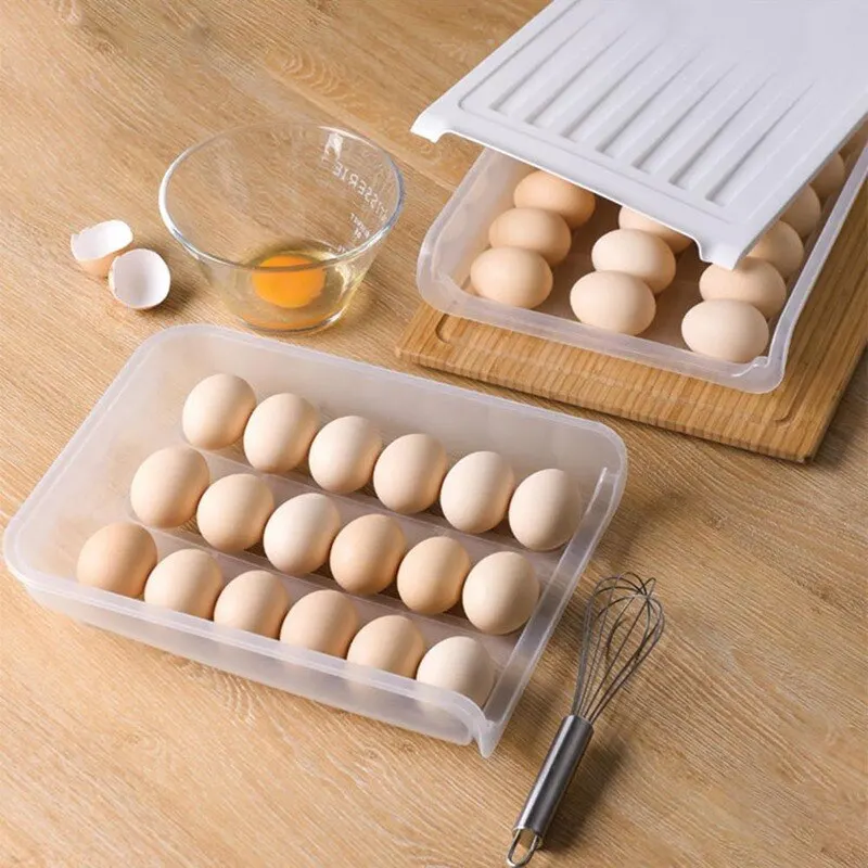 Холодильник для хранения яиц держатель холодильник яйцо пластиковая коробка Авто прокрутка лоток для яиц из пищевой контейнер Органайзер, кухонные аксессуары