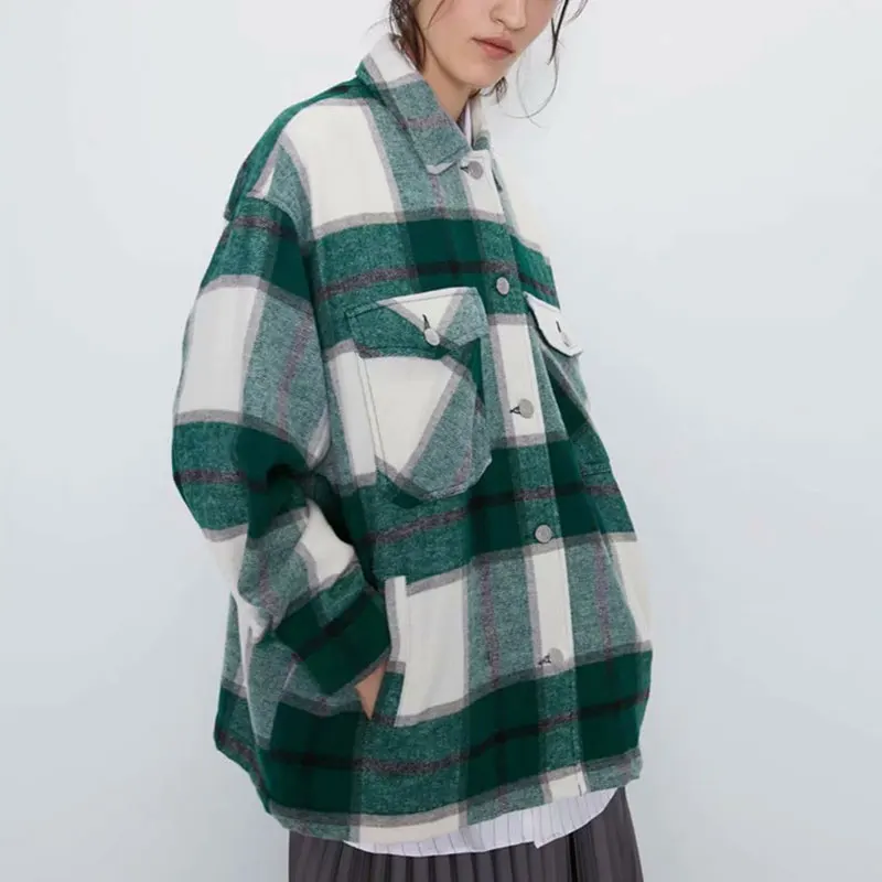 Винтажная зеленая клетчатая рубашка, женское Свободное пальто, зима...