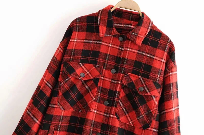 Фланелевая клетчатая Верхняя рубашка Flectit с воротником с лацканами и передним карманом и длинным рукавом, женские теплые шерстяные куртки и пальто большого размера *