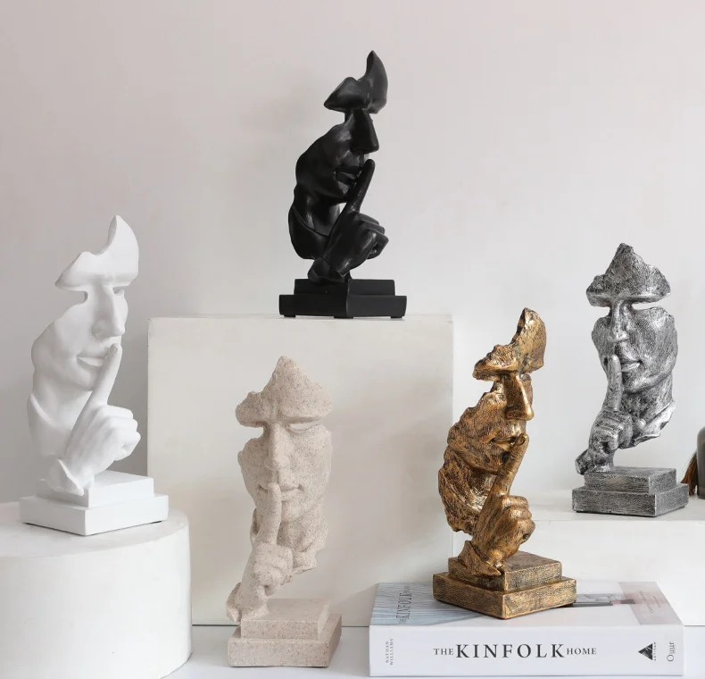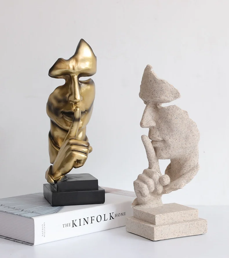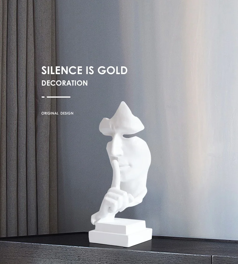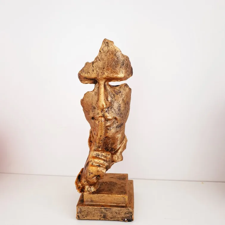 Фигурка VILEAD, 27 см, из смолы, с изображением тишины-это Золотая маска, абстрактное украшение, скульптура для офиса, винтажное украшение для дома