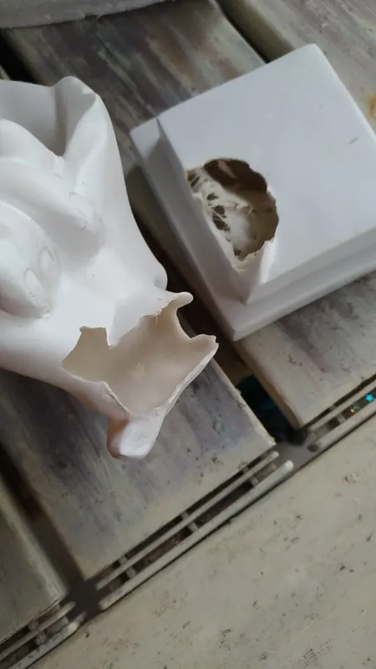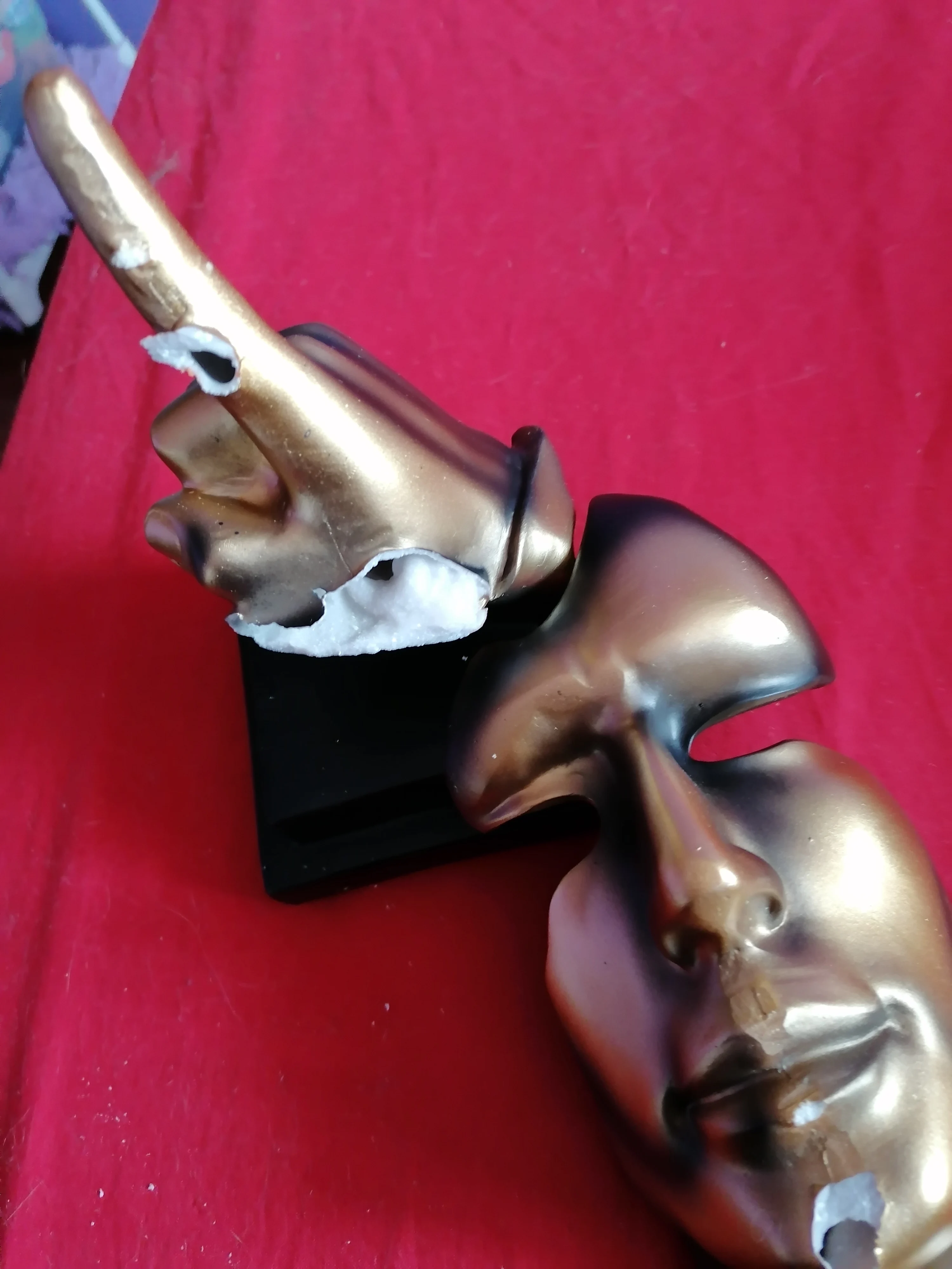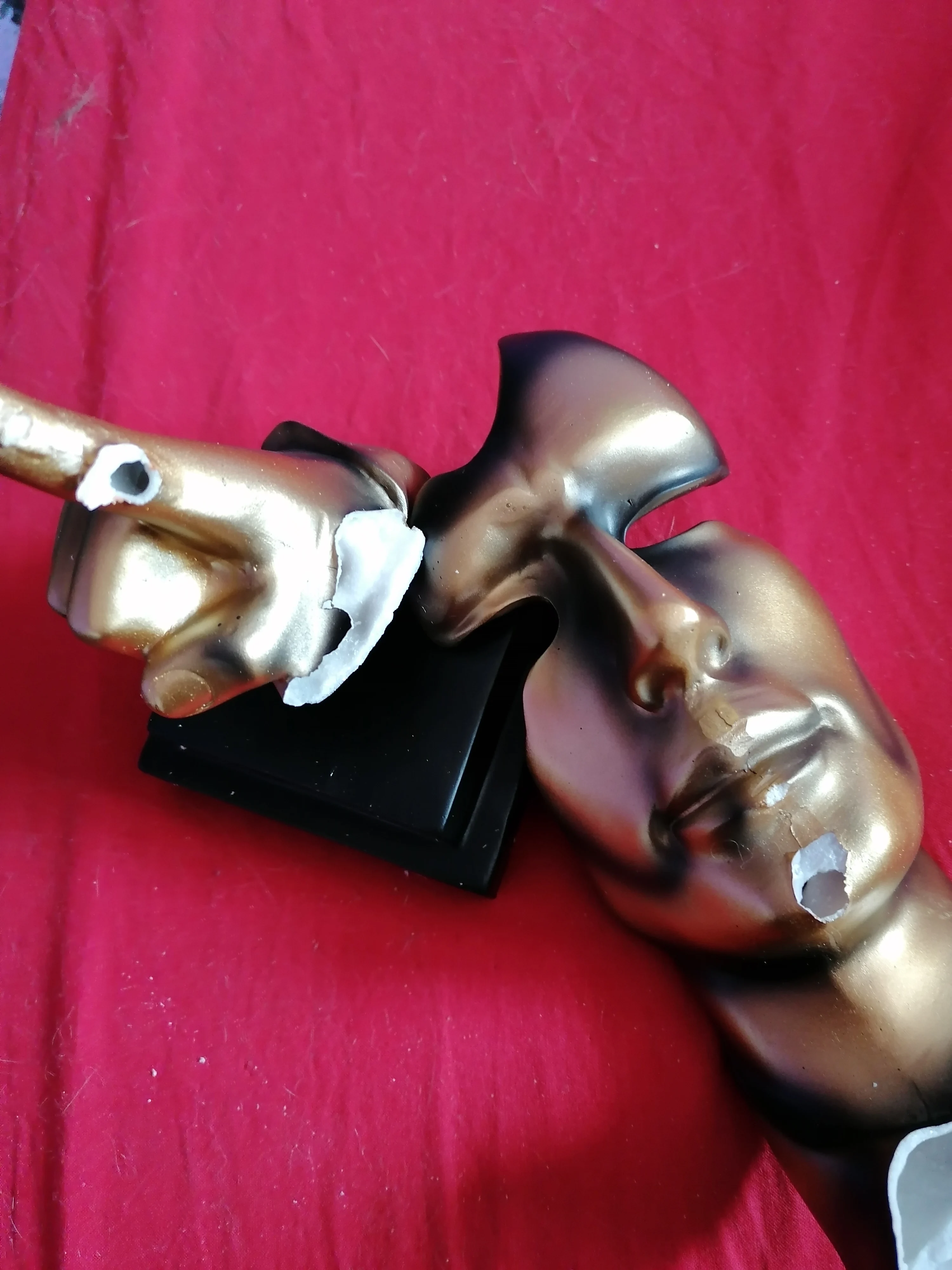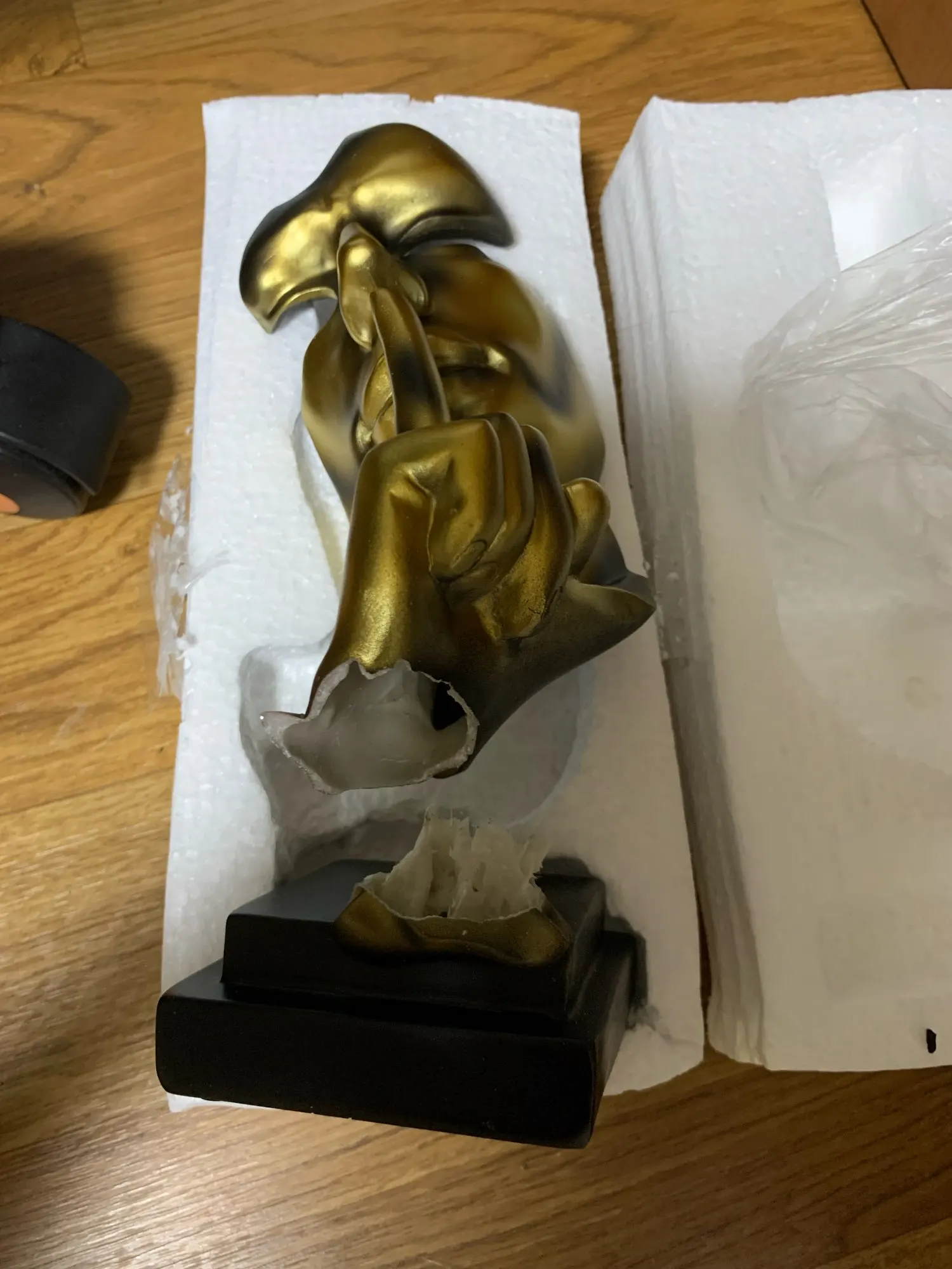 Статуэтка пришла расколотая, запакована была хорошо, разбиться не могла, следовательно уже такую положили