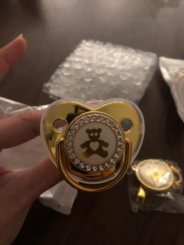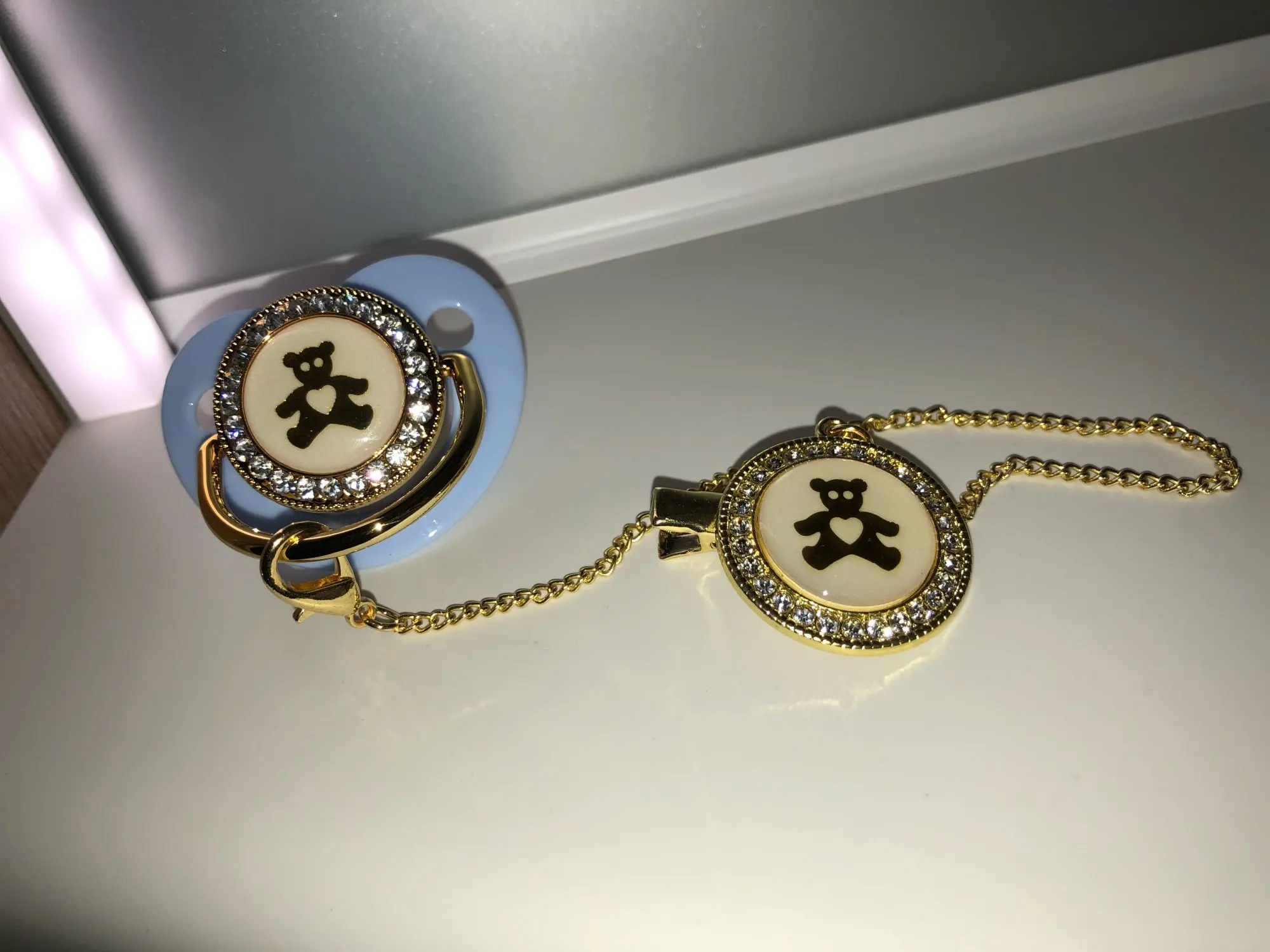 Наши блестящие Пустышки и зажимы для соски отличаются высочайшим качеством и прочно крепятся нетоксичным клеем. Если ребенок сможет бросить, жевать или повредить изделие, есть вероятность, что кристалл может отсоединиться. Требуется присмотр взрослых.