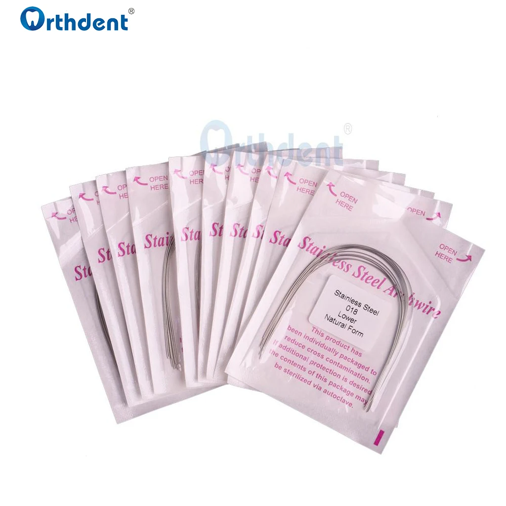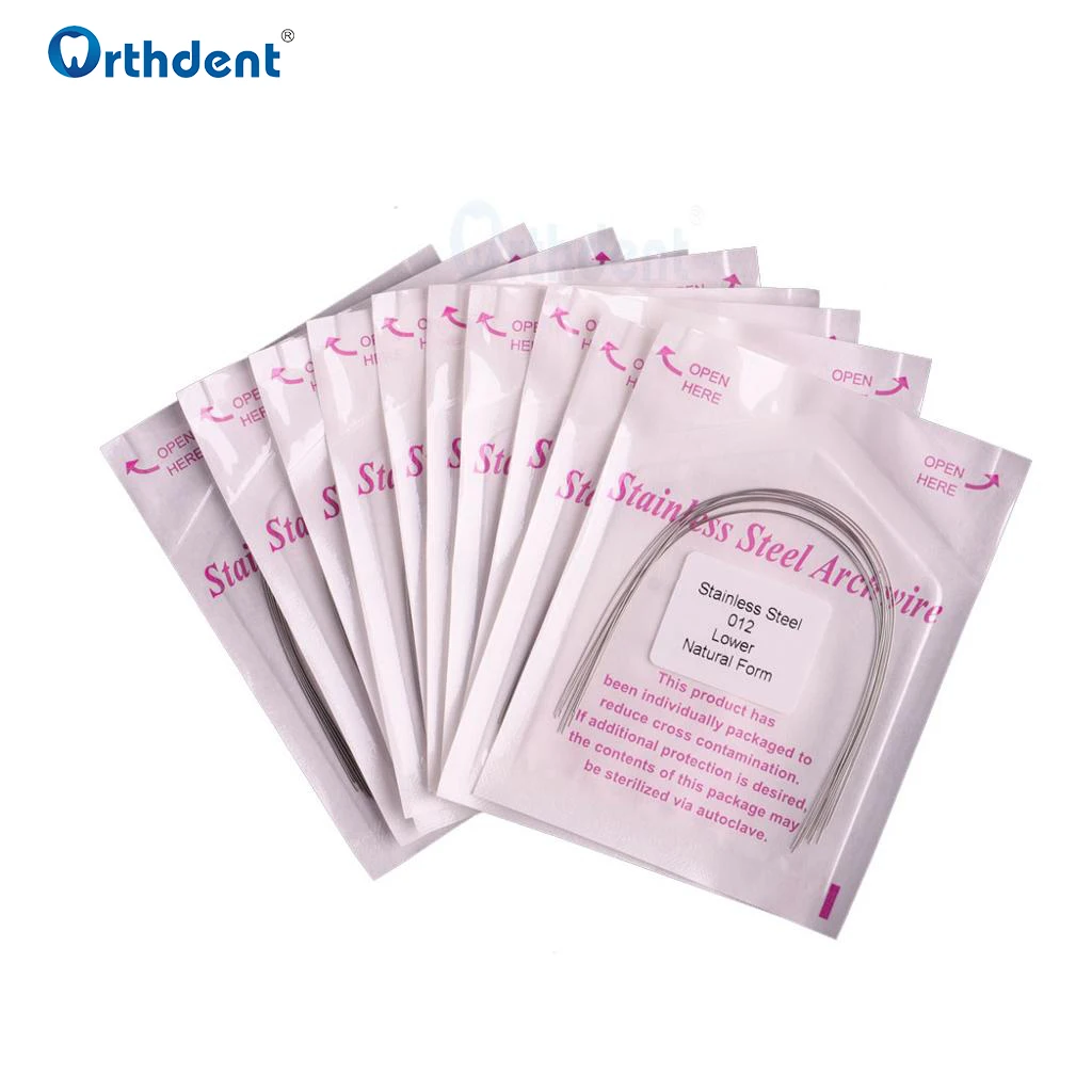 10 упаковок, стоматологическая проволока из нержавеющей стали, круглая АРКА, естественная форма, Ортодонтические арки для брекетов, верхняяНижняя 1214161820