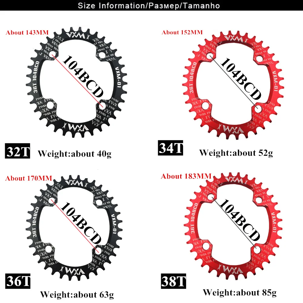 Велосипедный Кривошип VXM, Круглый Овальный 104BCD 32T34T36T38T, зв...