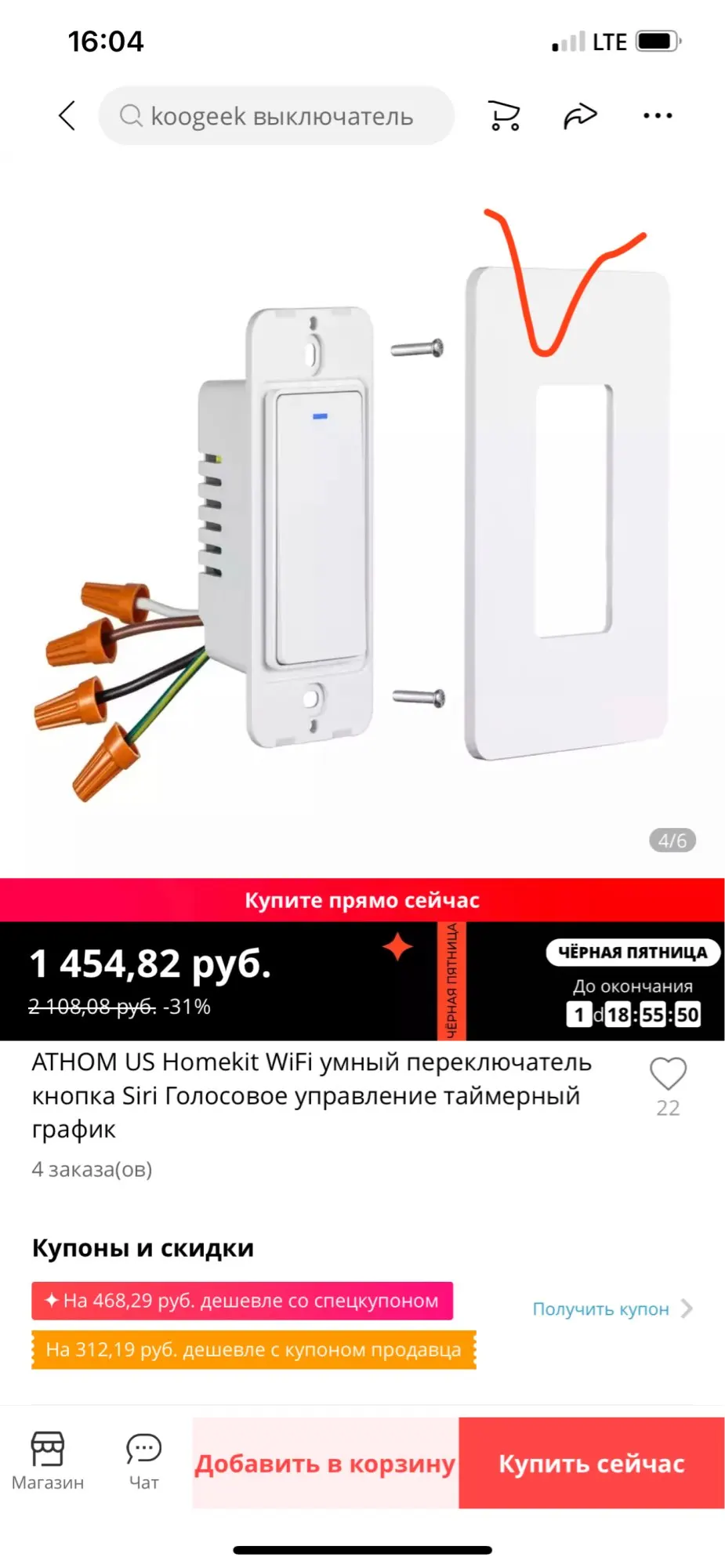 Смарт-переключатель ATHOM US Homekit, WiFi, Siri, голосовое управление, расписание