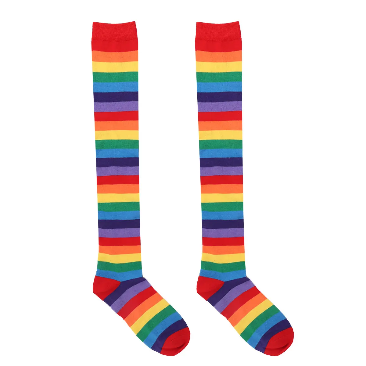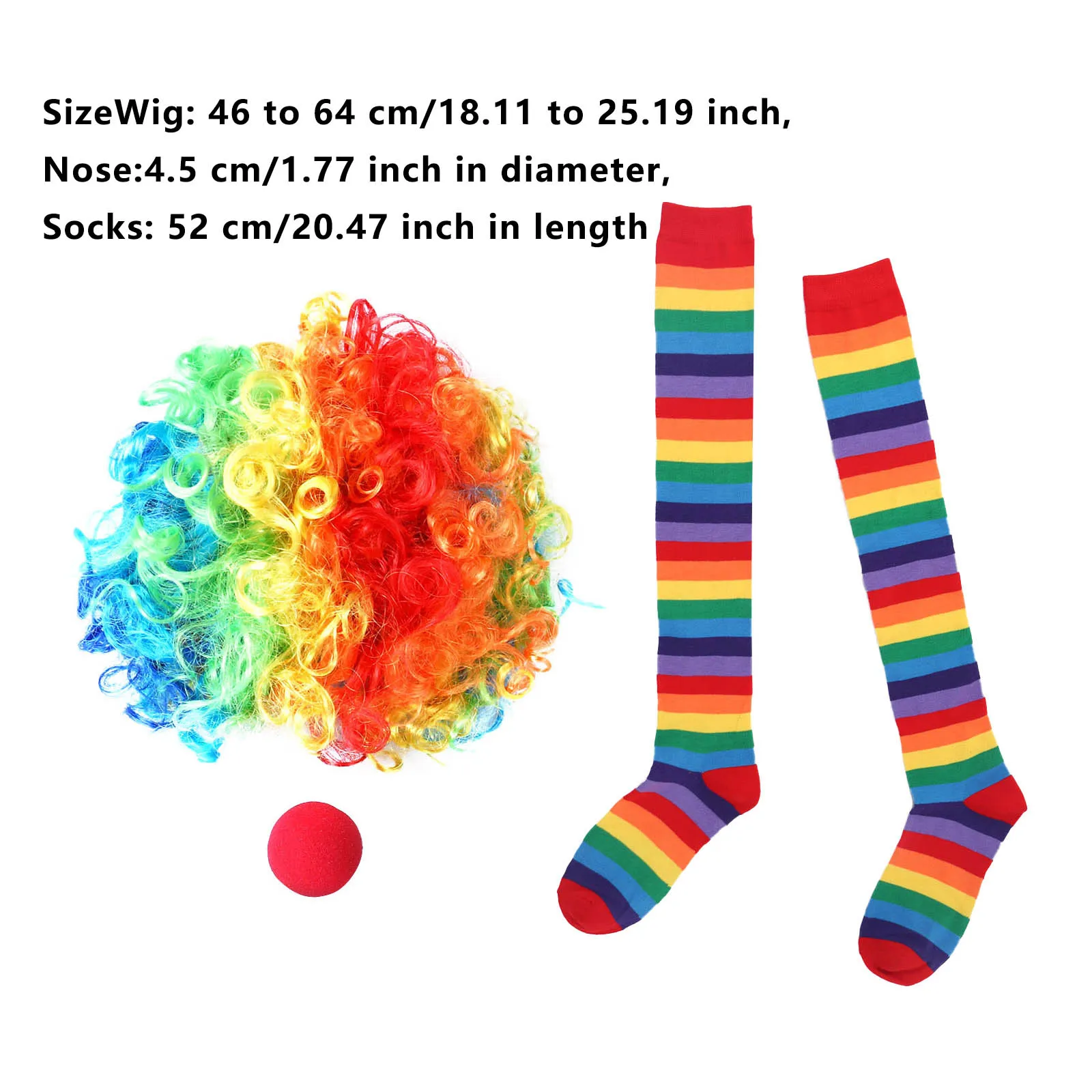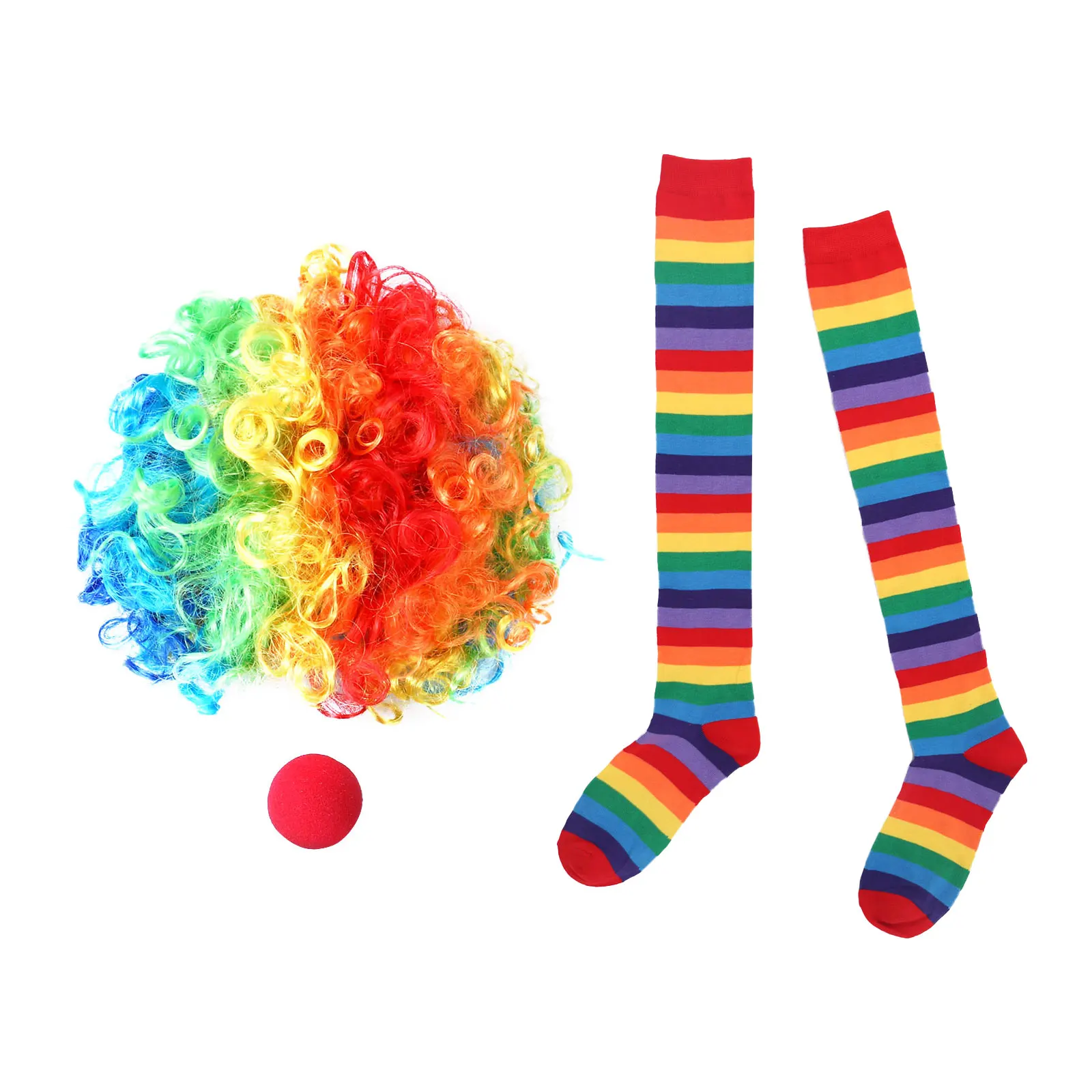Костюм клоуна для косплея аксессуары в радужную полоску; Женские сапоги до колена; Высокие носки костюм парик Красный Губка Нос комплект Хэллоуин вечерние реквизит
