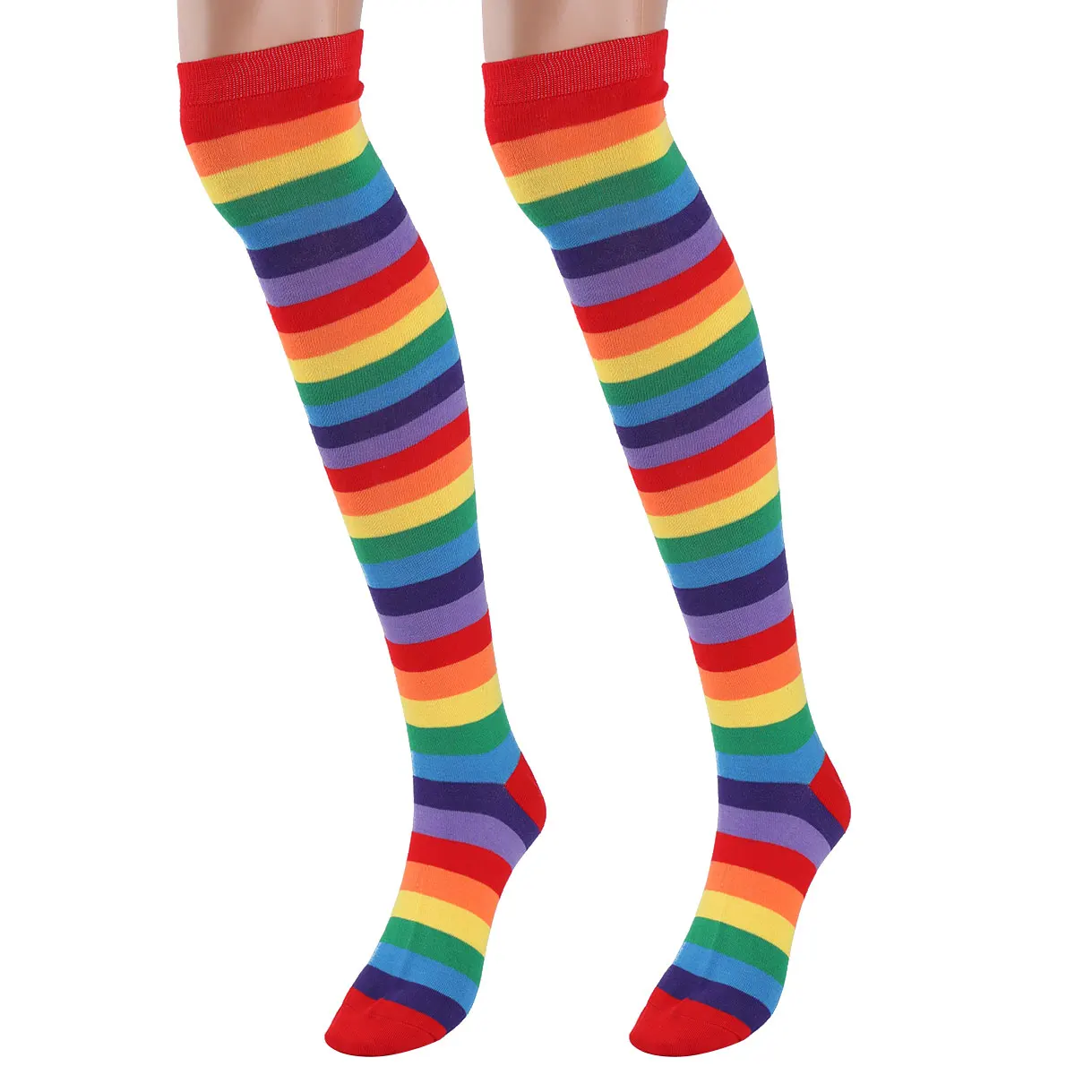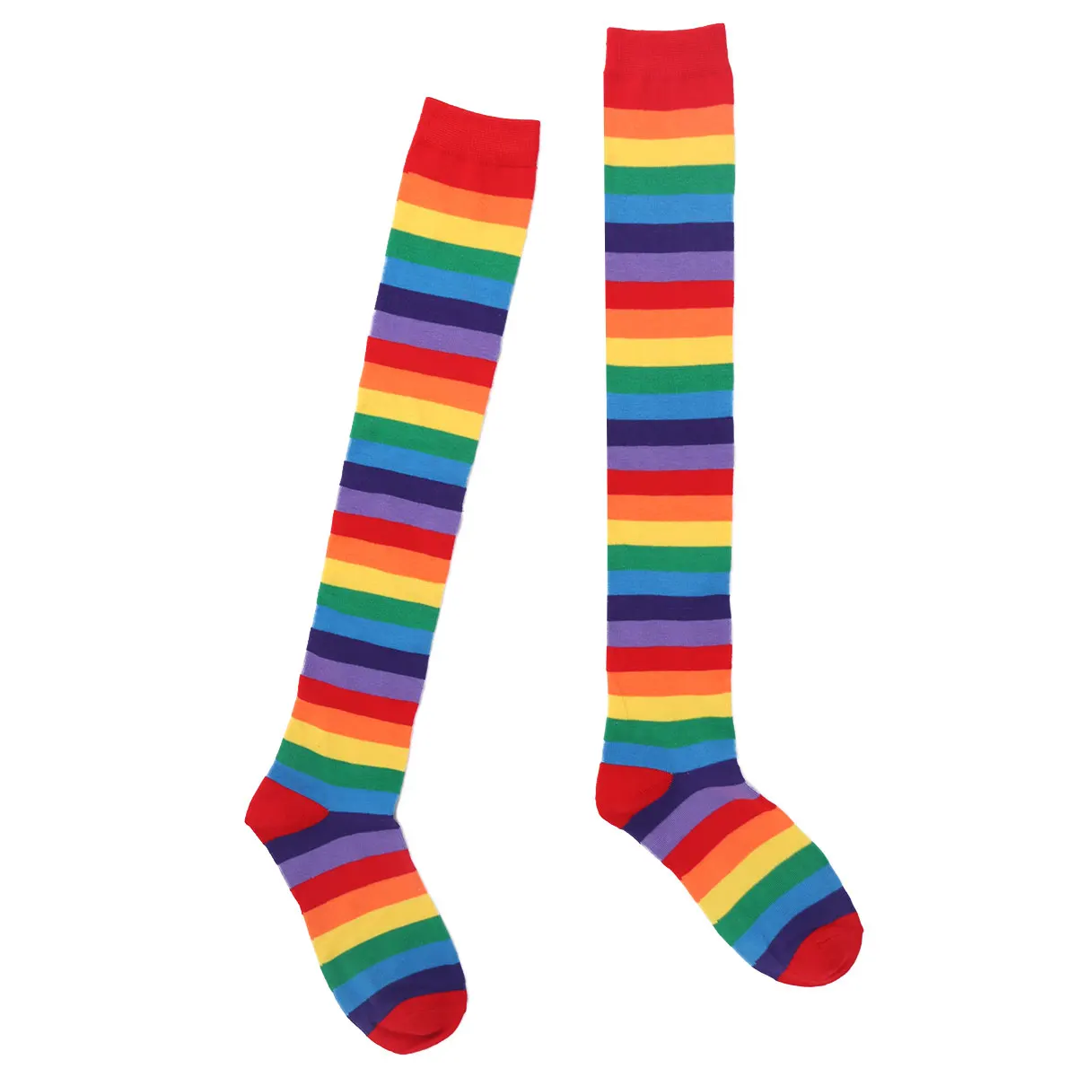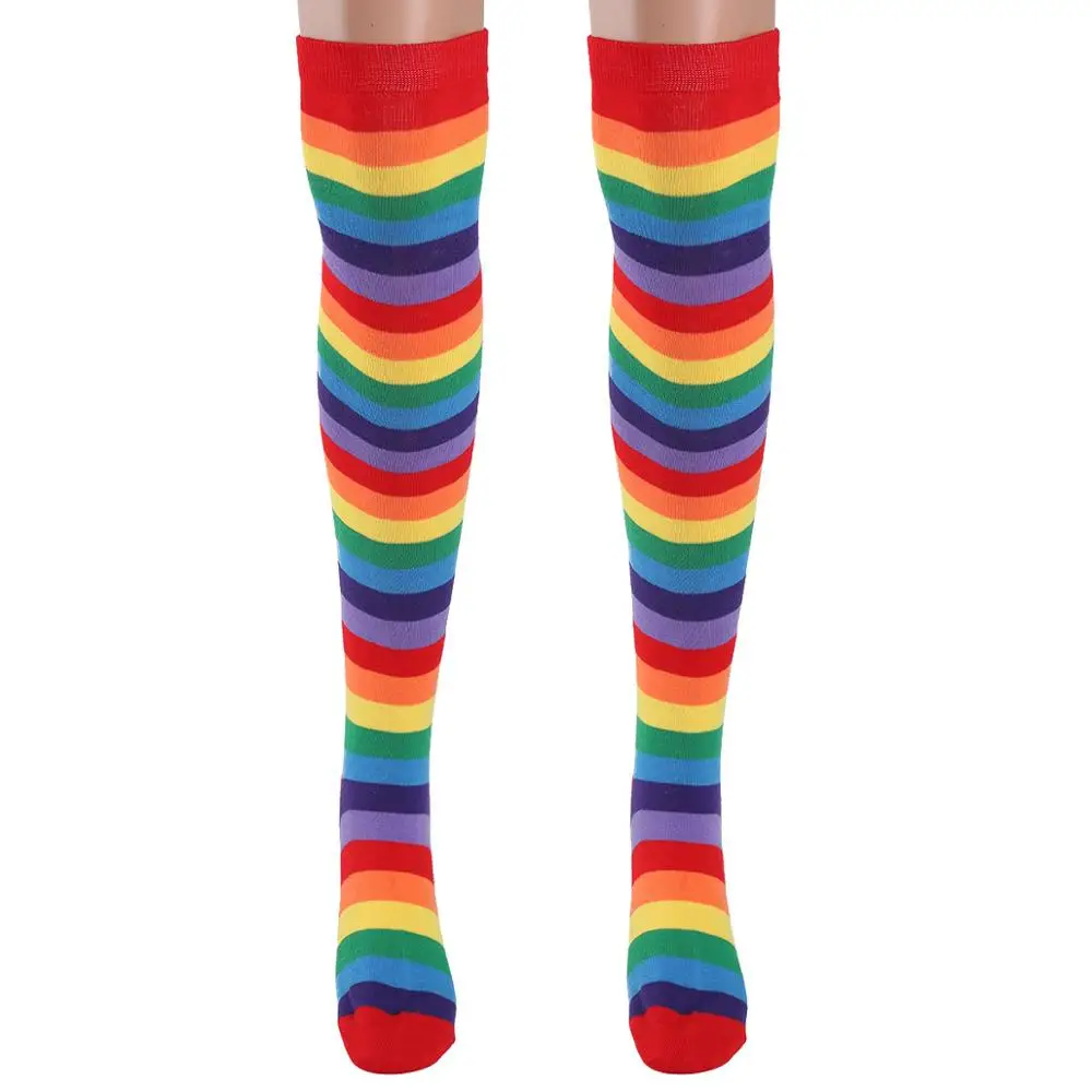 Костюм клоуна для косплея аксессуары в радужную полоску; Женские сапоги до колена; Высокие носки костюм парик Красный Губка Нос комплект Хэллоуин вечерние реквизит