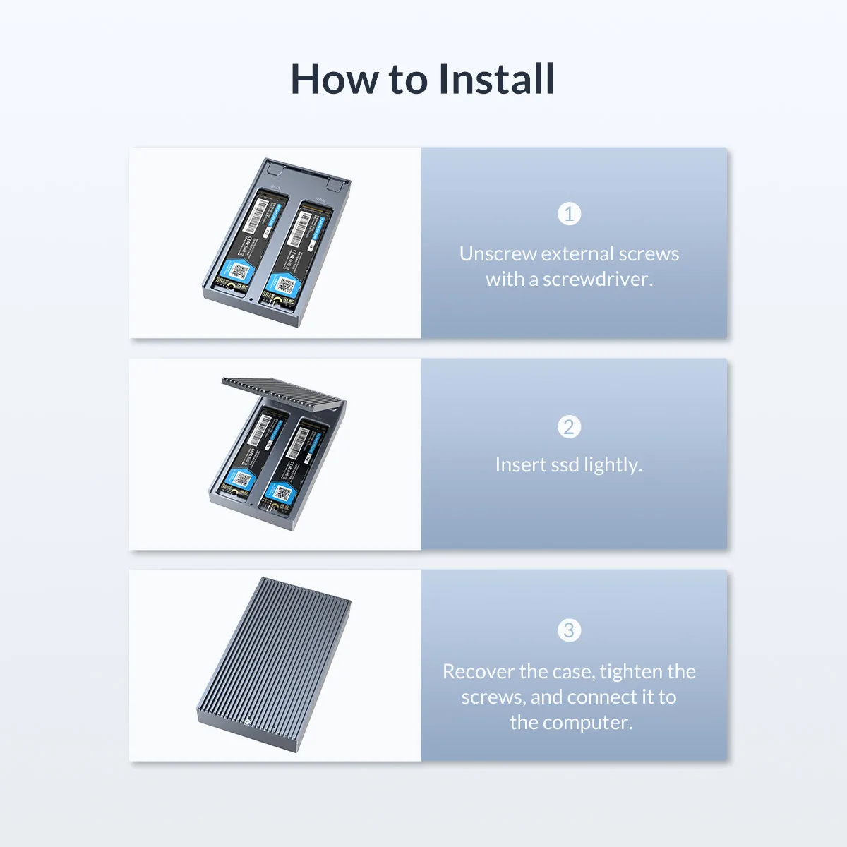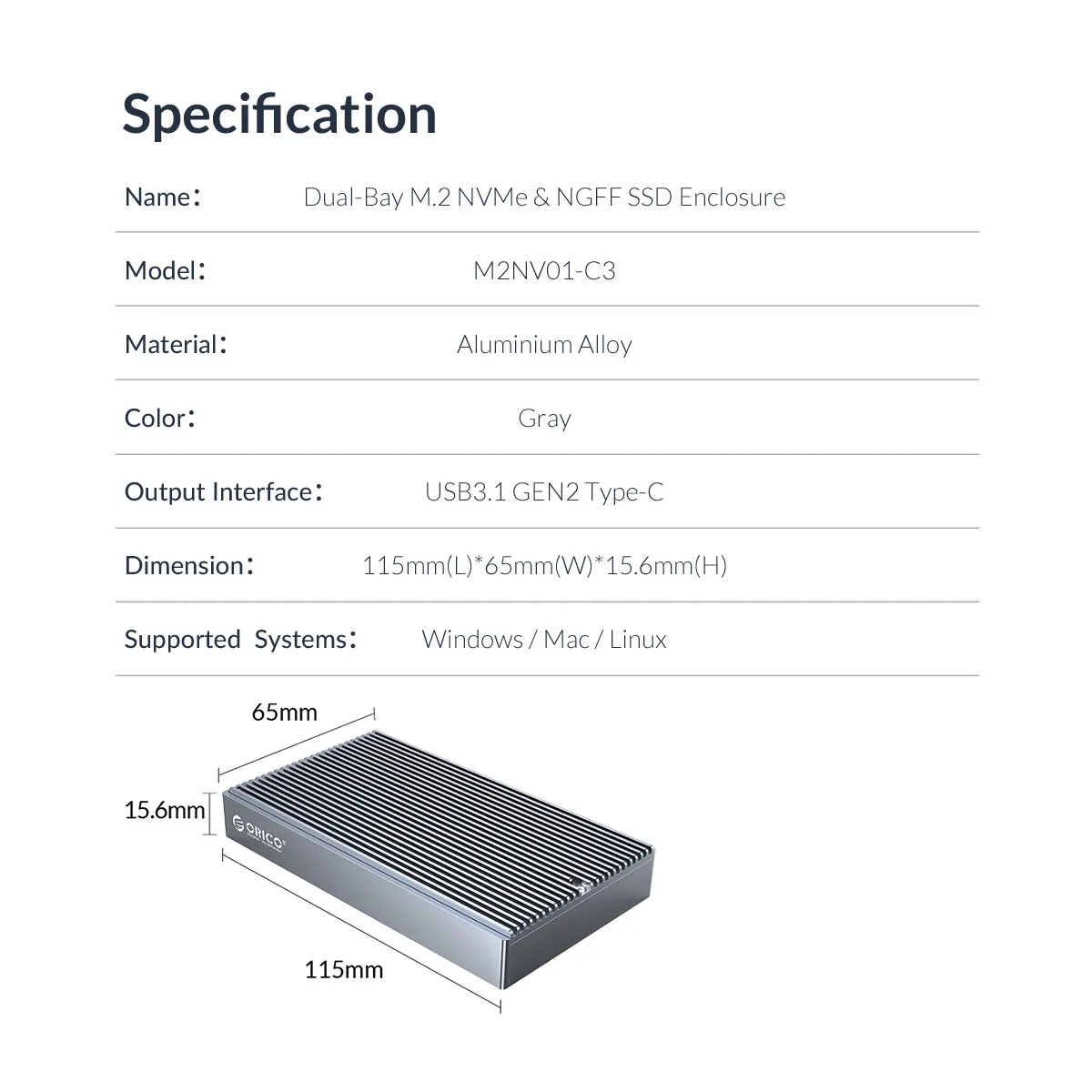 Чехол ORICO LSDT с двумя отсеками, поддержка M.2 NVME NGFF SATA SSD Disk для M Key и B + M Key SSD с адаптером питания 5 В, 4 а