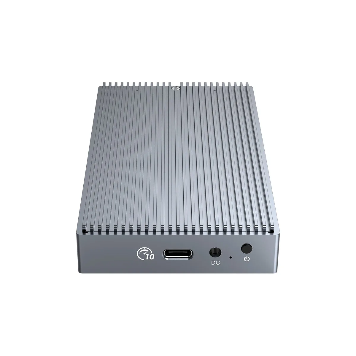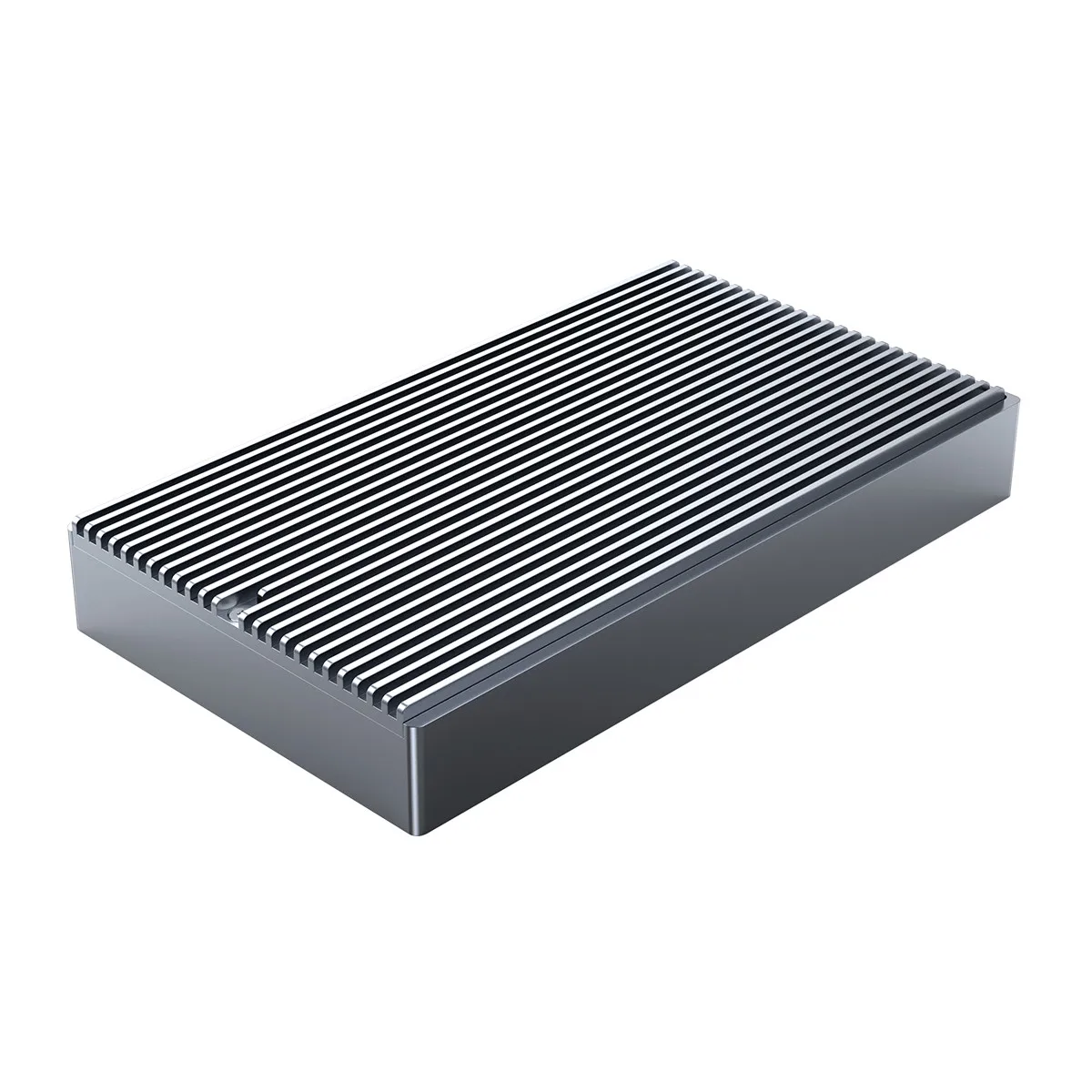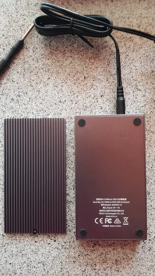 Работает хорошо. Один слот оснащен NVMe, а другой NGFF. Я думаю, что было бы лучше оба слота для NVMe. В любом случае твердый и тяжелый корпус будет большим радиатором и хорошо охлаждающим. Выглядит таким надежным и стабильным. Я надеюсь, что версии Thunderbolt с двумя слотами, такими как Olico.