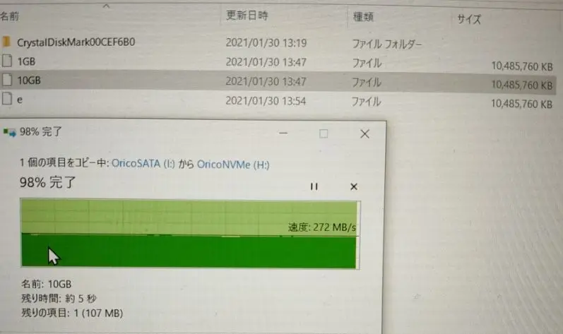Этот продукт очень уникален, потому что M.2 NVMe и M.2 SATA SSD доступны имитированно через только один usb кабель. Этот продукт подключен к USB-C порту gen2 на моем ПК Windows 10, затем каждому SSD присваивается каждый накопитель ОС на моем ПК. Я проверил производительность ssd с помощью кристаллического skmark8. Это очень хорошая производительность. Отлично! 1) Samsung SATA PM881 perf в слоте SATA 2) Samsung NVMe PM981 perf в слоте NVMe 3) передача файлов perf по Win10 explorer (SATA папка диска в NVME папка диска)