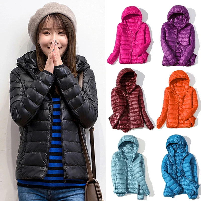 Женский пуховик с капюшоном, Легкая стеганая куртка-пуховик с защитой от ветра, Осень-зима 2020