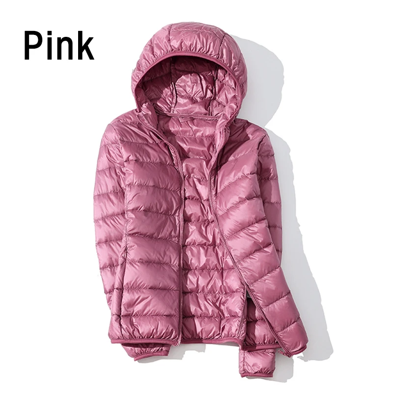 Зимняя женская Ультралегкая тонкая пуховая куртка с капюшоном на бе...