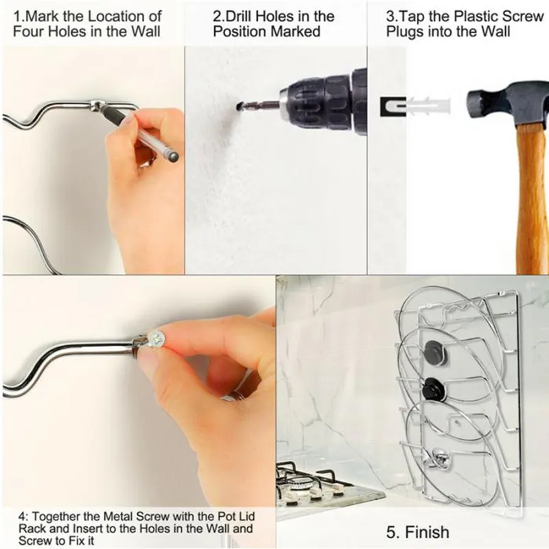 Кухонная полка для крышки кастрюли, настенная подвесная многофункци...