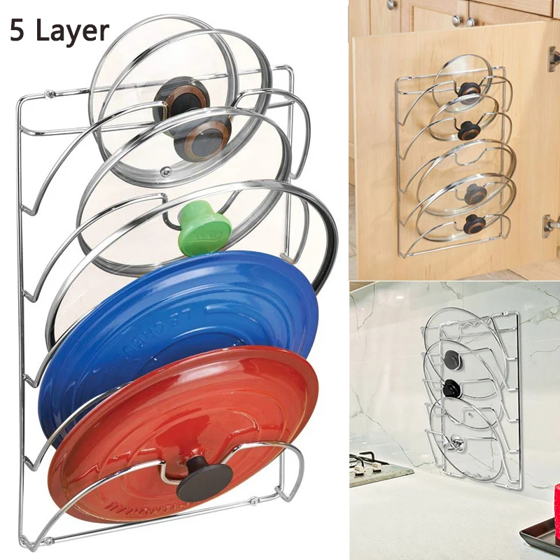 5-слойный органайзер для хранения крышек кастрюль настенное крепление на дверь полка сушилка сковорода домашний Ресторан Бар кухонные принадлежности защита от падения