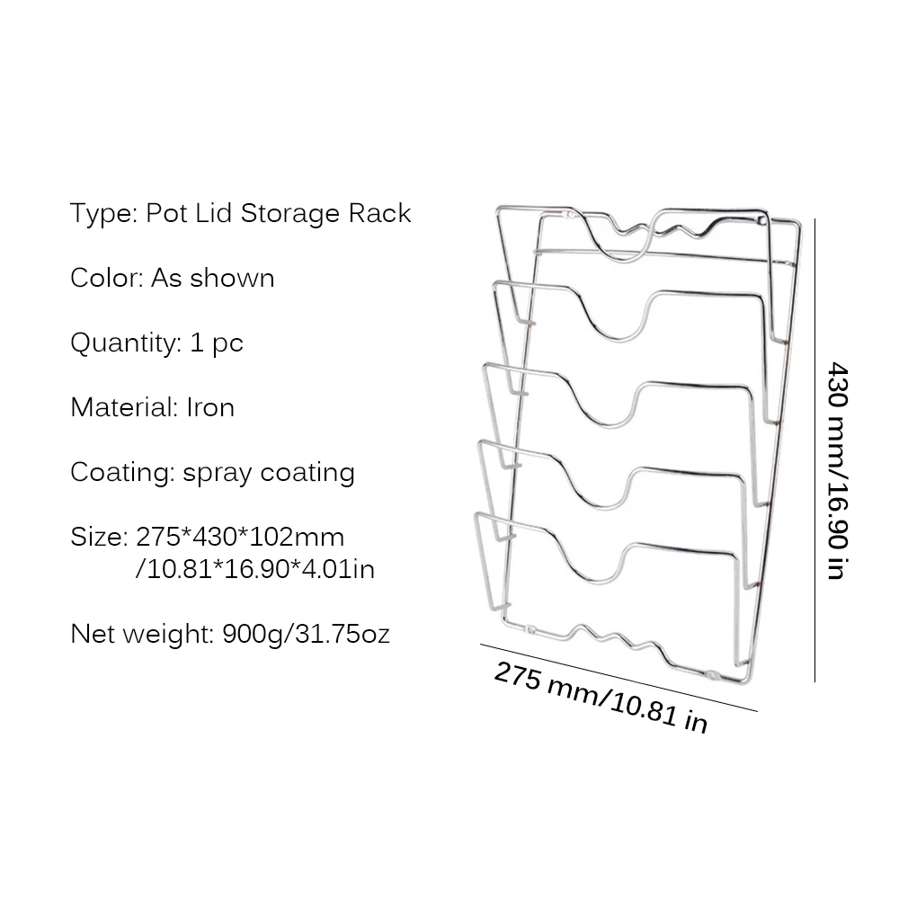 5-уровневая полка для хранения крышек кастрюль металлическая многоф...