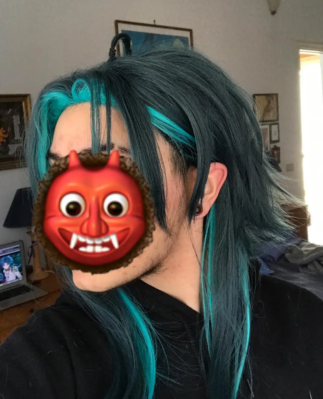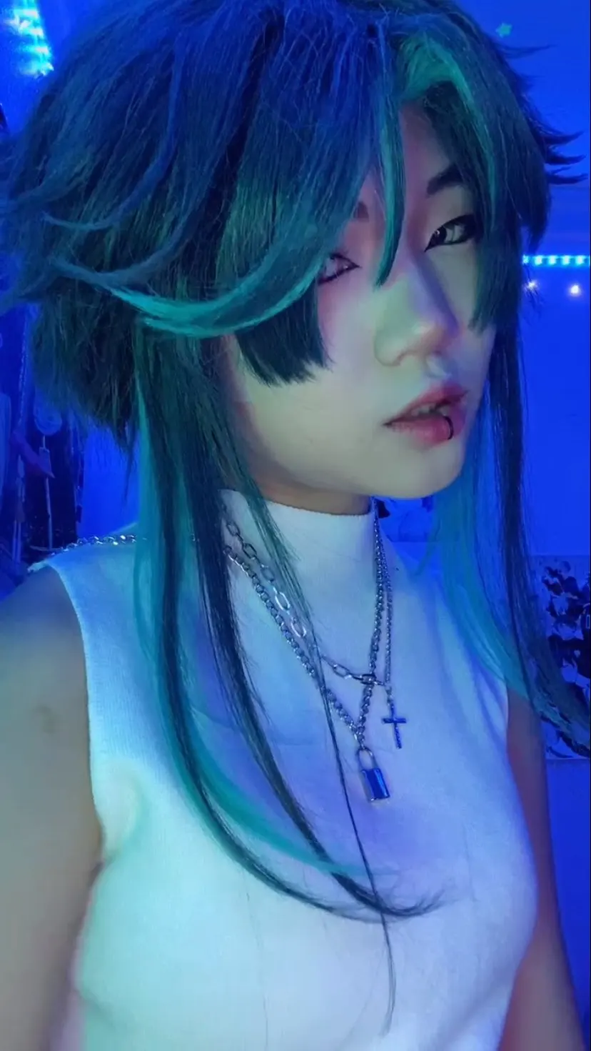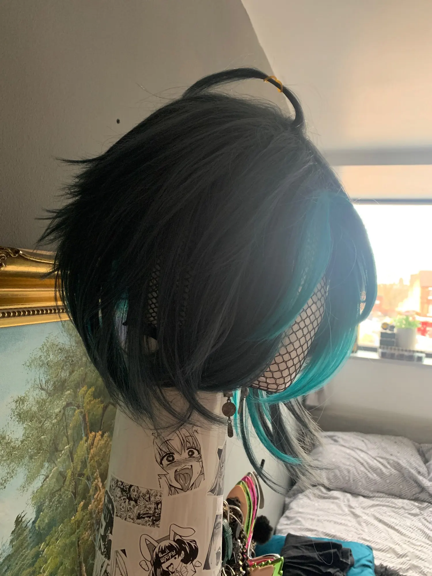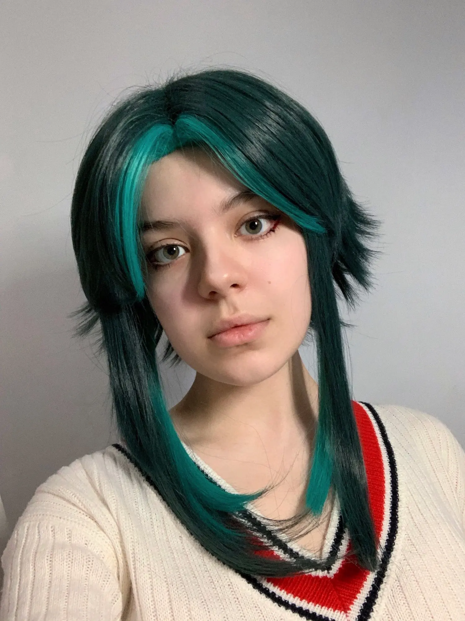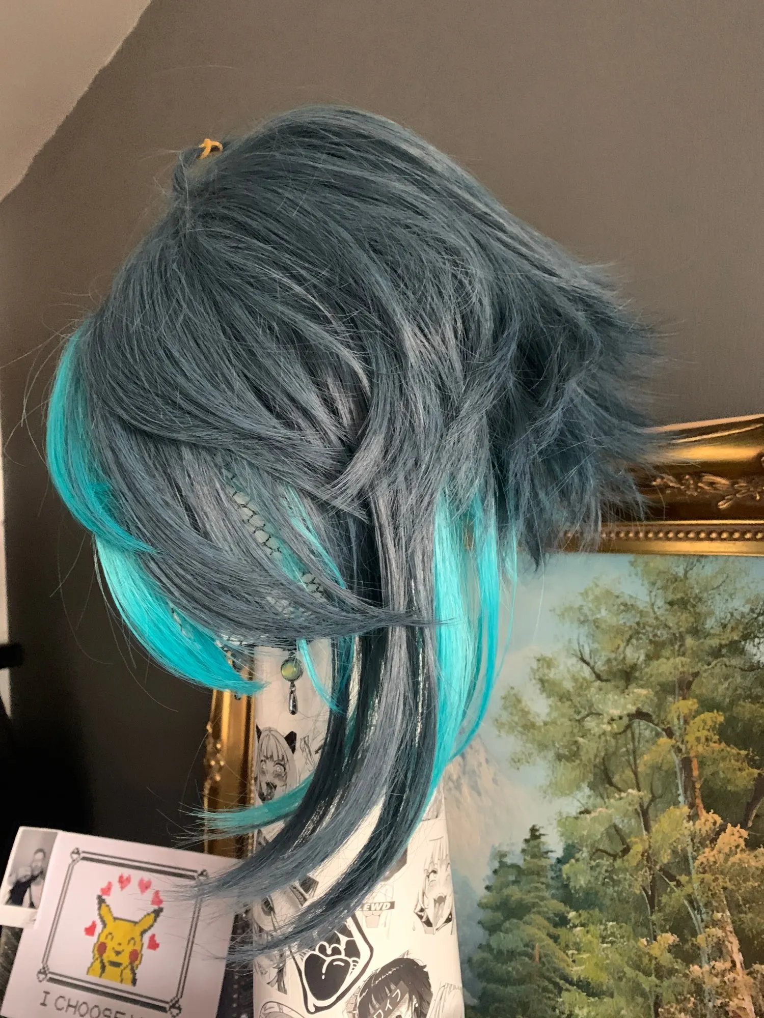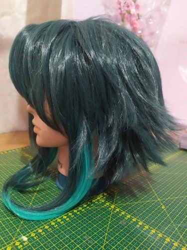 Парик для косплея Genshin Impact Xiao, смешанные короткие термостойкие волосы темно-зеленого и синего цвета, для взрослых, для ролевых игр на Хэллоуин