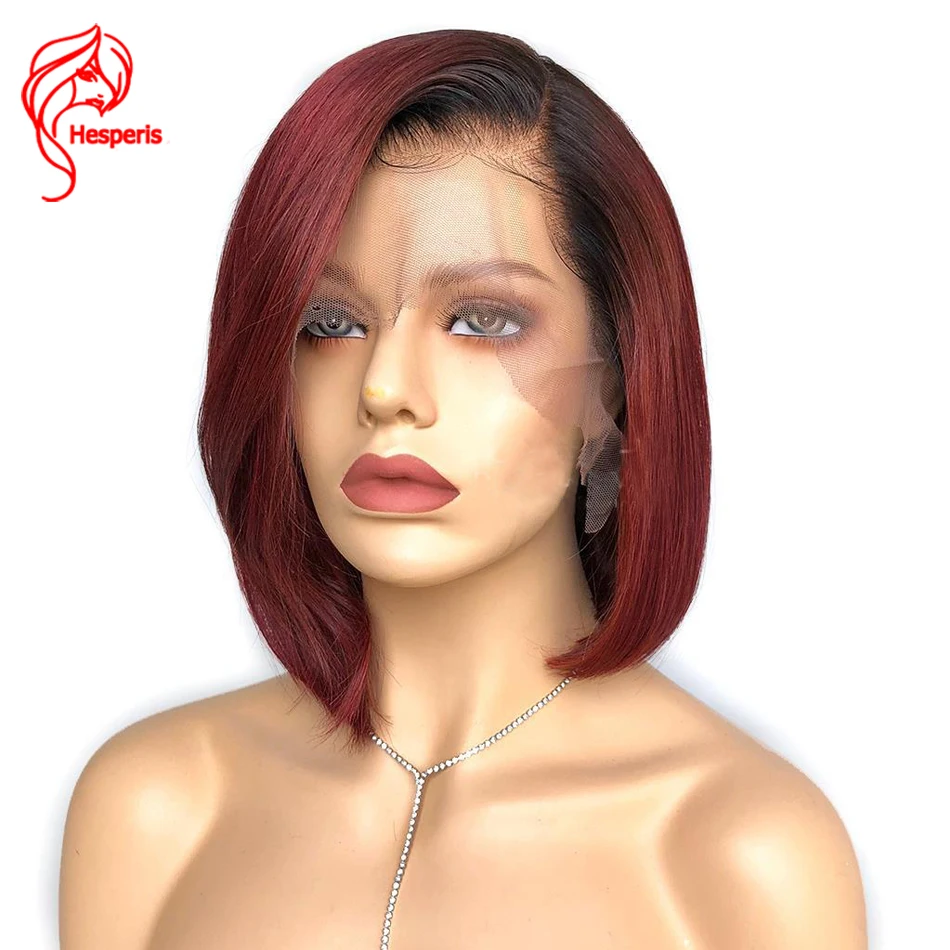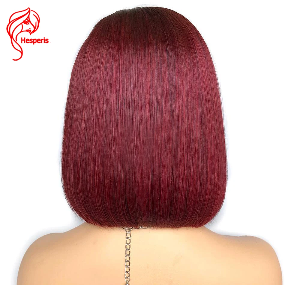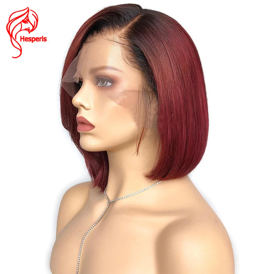 Hesperis бордовый Шелковый базовый парик на шнурке 1B 99J боб парики Омбре красный короткий Боб человеческие волосы парики бразильские предварительно выщипанные
