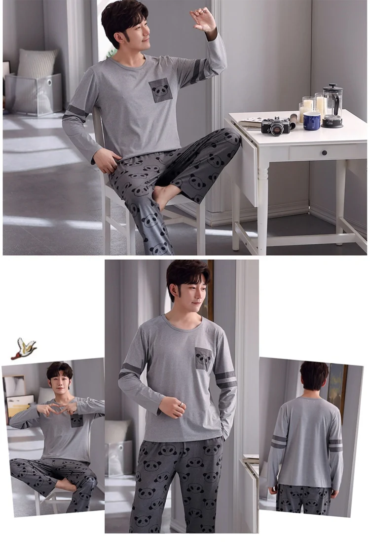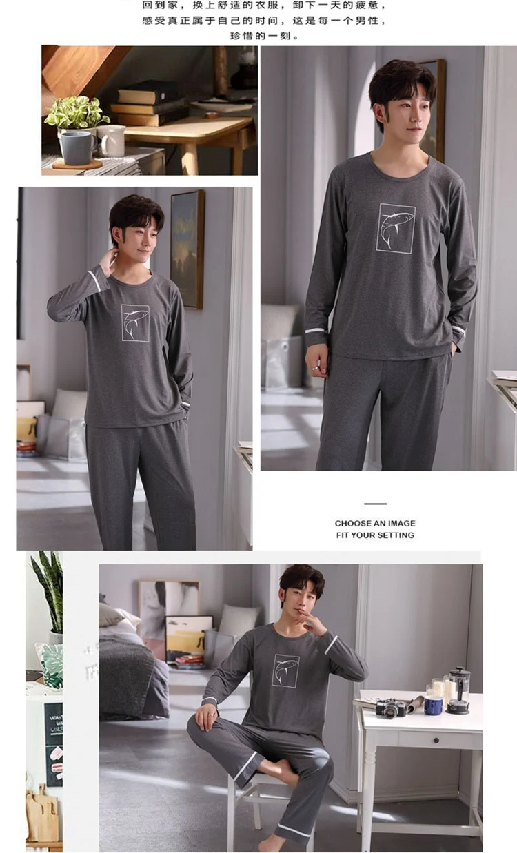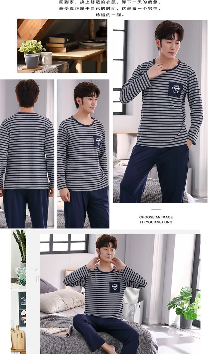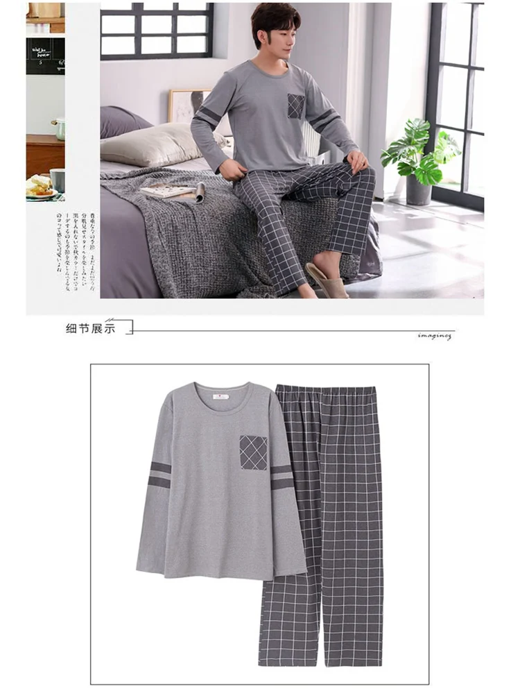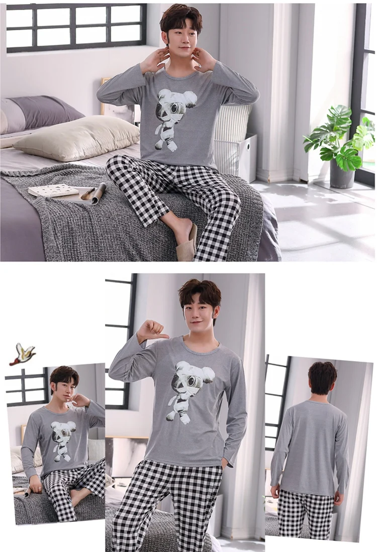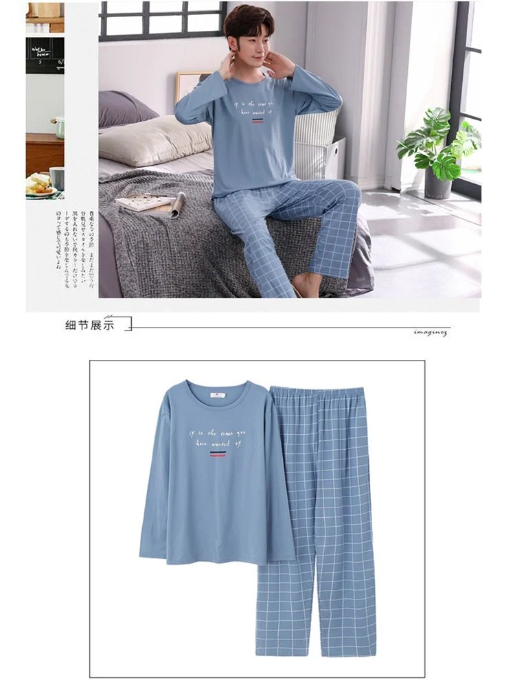 Пижама мужская хлопковая с длинным рукавом, пижамный комплект, штаны и одежда для сна, домашняя одежда, 3XL, Осень-зима 2021