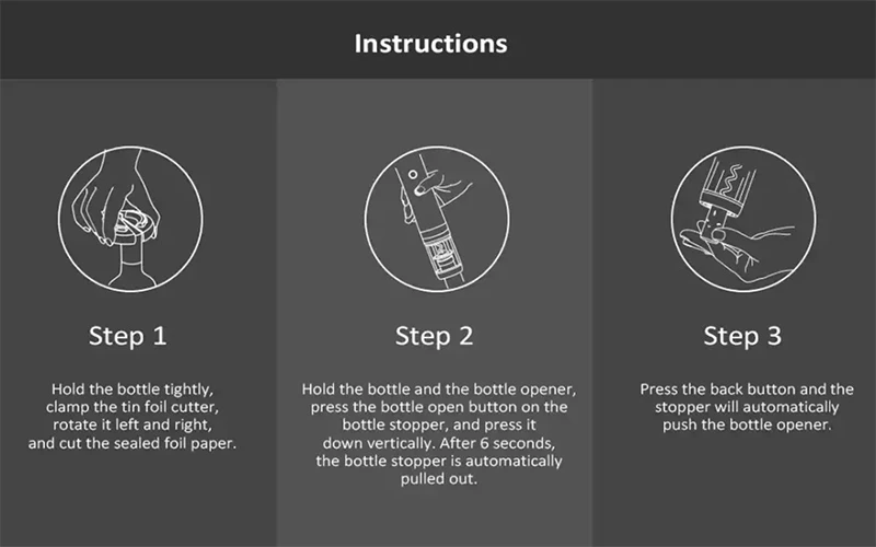 Feature 1Hidden battery compartment,full power can open 120 bottles of red wine