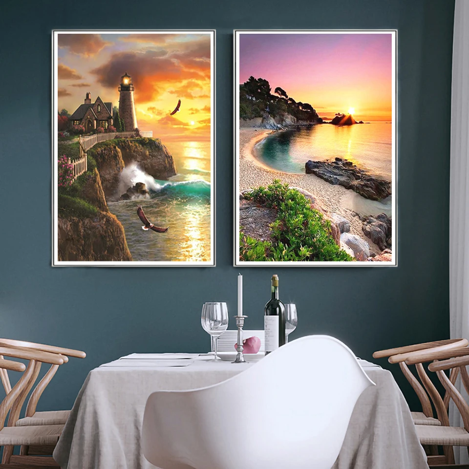 Алмазная 5D картина сделай сам, пейзаж, закат, полная Алмазная вышивка, мозаика, картина, Набор для вышивки крестиком стразы, украшение для дома, подарок