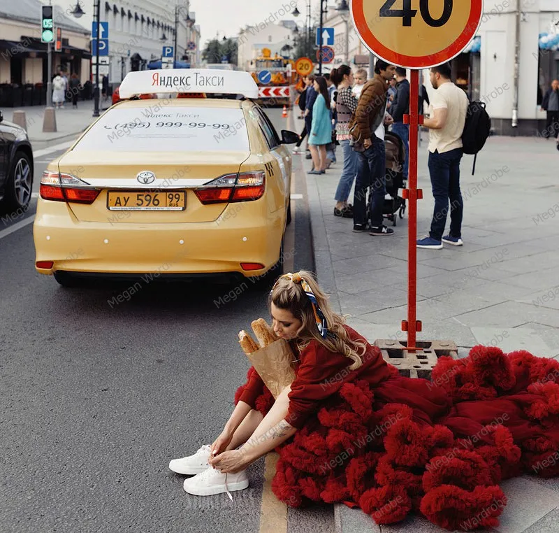 Женская плиссированная юбка со шлейфом, бордовая фатиновая юбка с оборками, для фотосессии