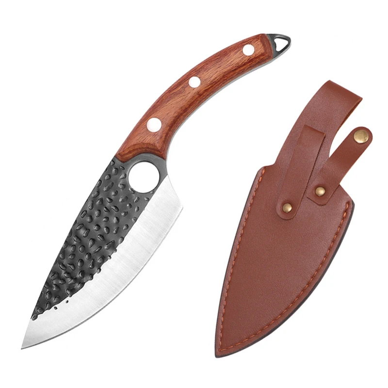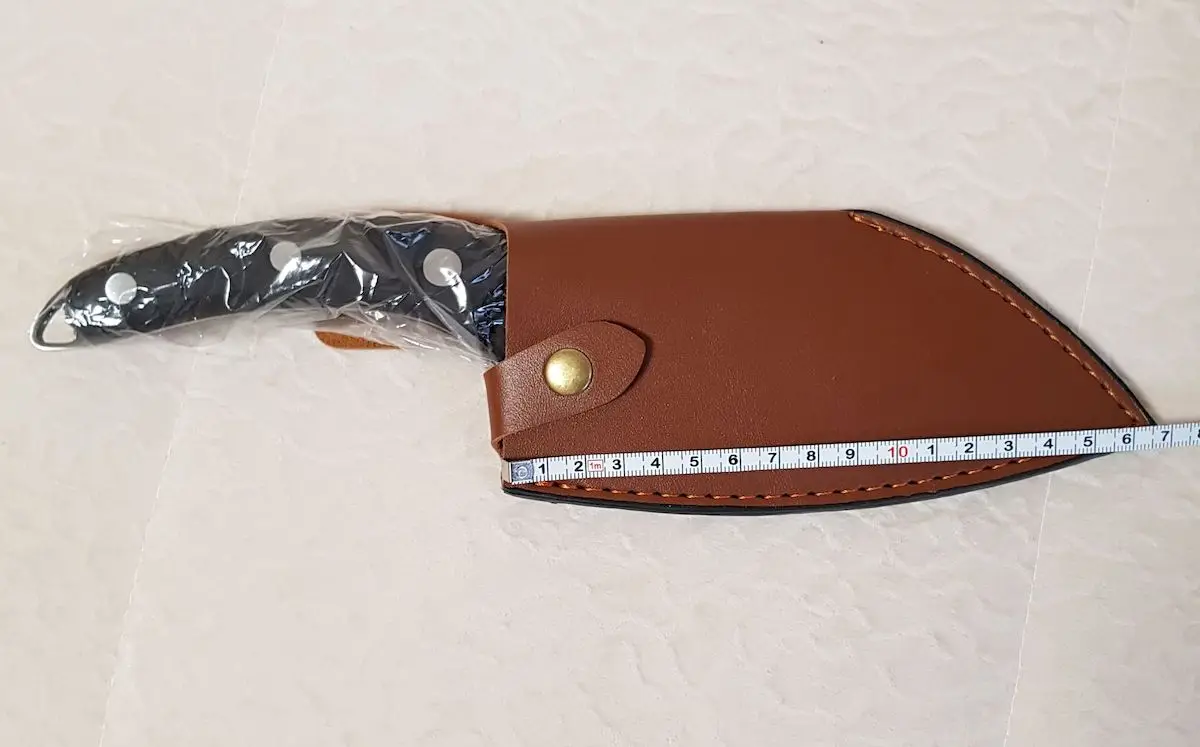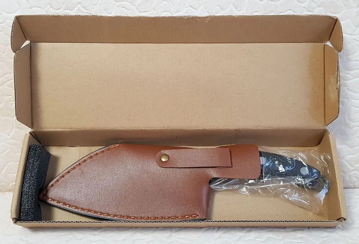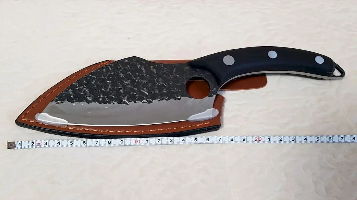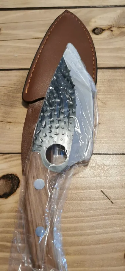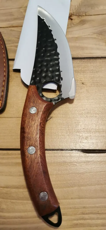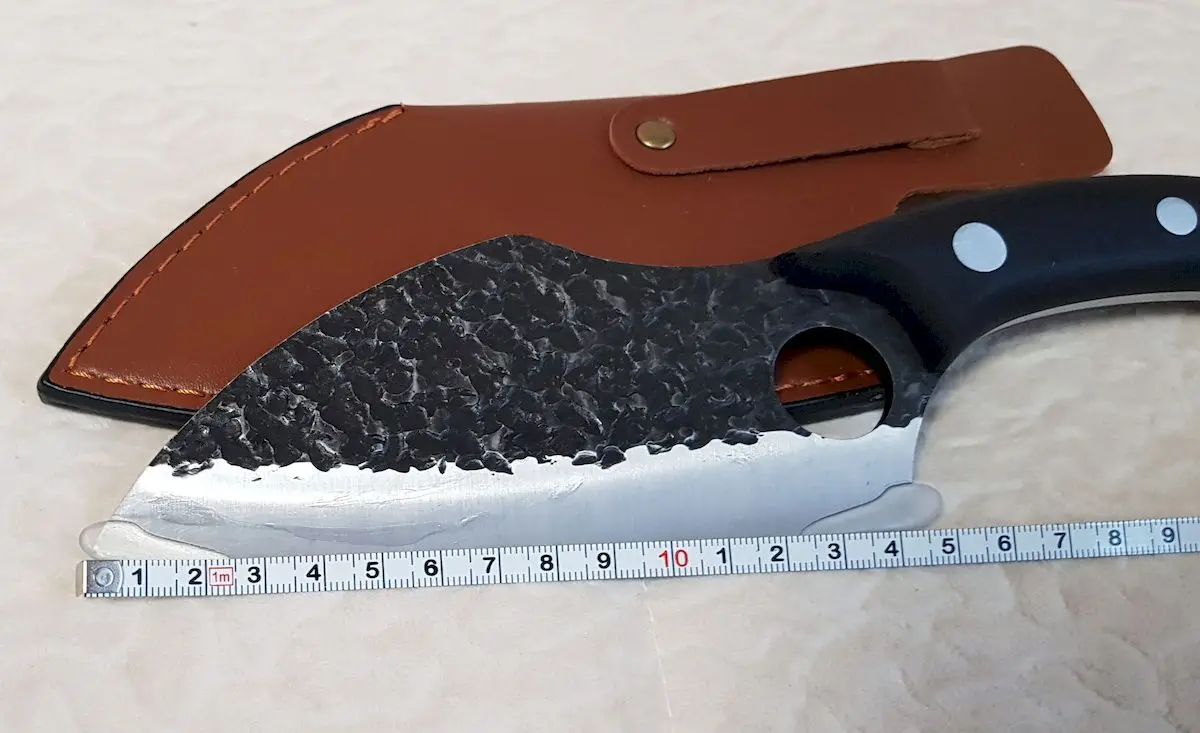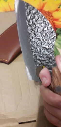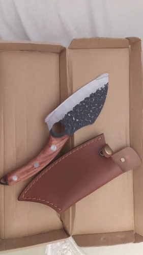 Добротно сделанный кухонный нож для разделки мяса и не только. Толщина кованной стали у основания - 4 мм, удобная эргономичная ручка, цена разумная. Чехол взял в комплекте и не пожалел - нож тяжёлый, габаритный и острый - так просто не потаскаешь в сумке или рюкзачке - только в чехле. Можно закрепить на ремне - на чехле есть крепление. Особенно это удобно при готовке мяса на природе (шашлыки, барбекю). Для этого и заказывал, собственно! :-). Доставили в почтовое отделение за 4 недели. Покупкой доволен на все 100%. Рекомендую товар и поставщика.