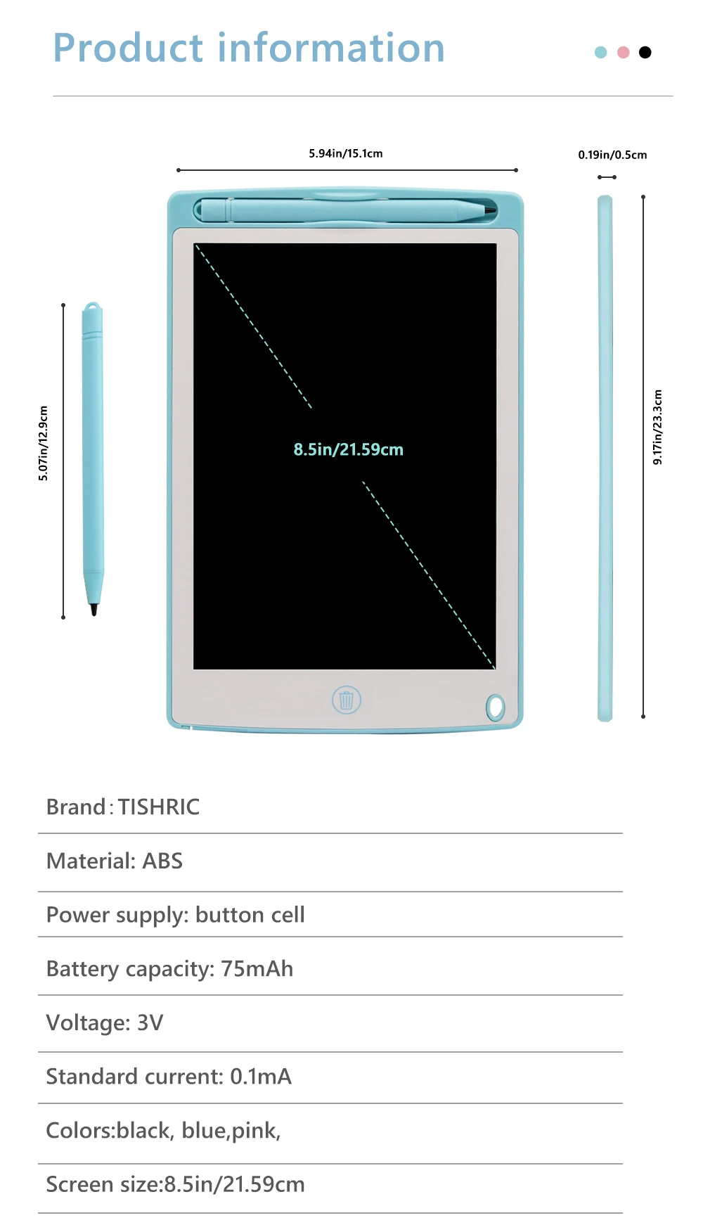 Графический планшет Tishric, 8,5 дюйма, цветной экран для рисования, детская электронная доска, ЖК-планшет для письма с стилусом, подарки
