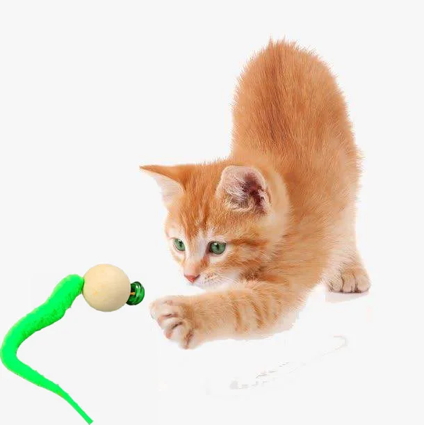Игрушка-червь с колокольчиком, случайный цвет, имитация питомца, деревянная вигли, Шариковая голова, плюшевый хвост, Интерактивная Дразнилка для кошки, жевания