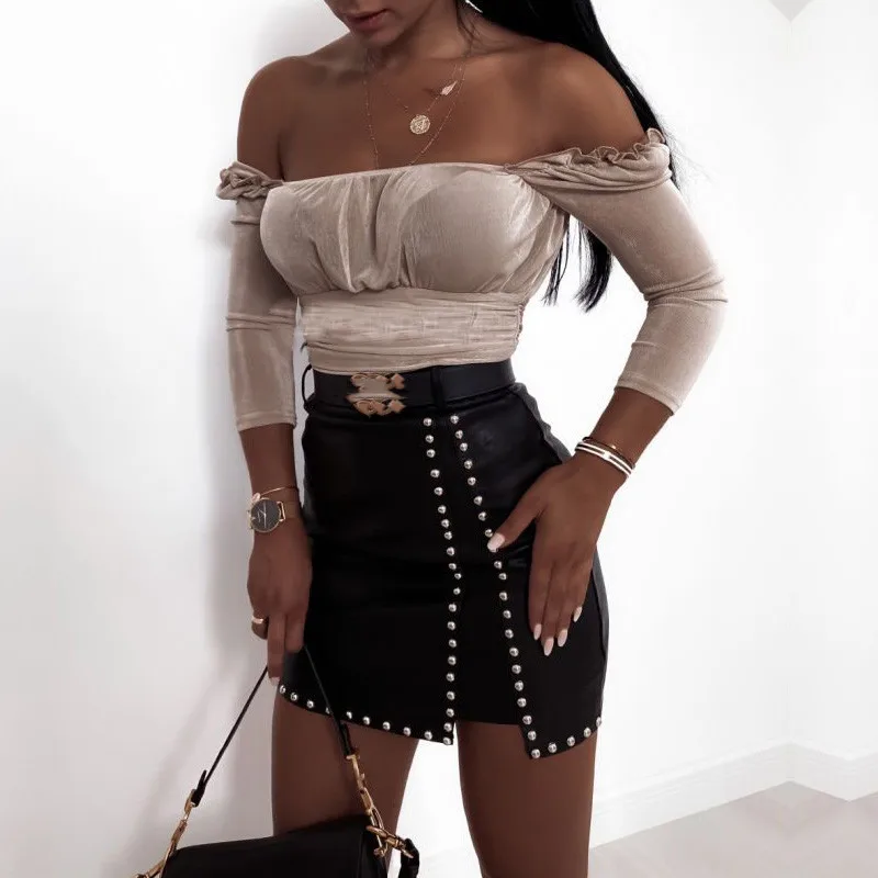Женская Сексуальная мини-юбка для взрослых, юбка из искусственной кожи с декоративные стразы юбками, сексуальная короткая мини-юбка с высокой талией, черная, коричневая