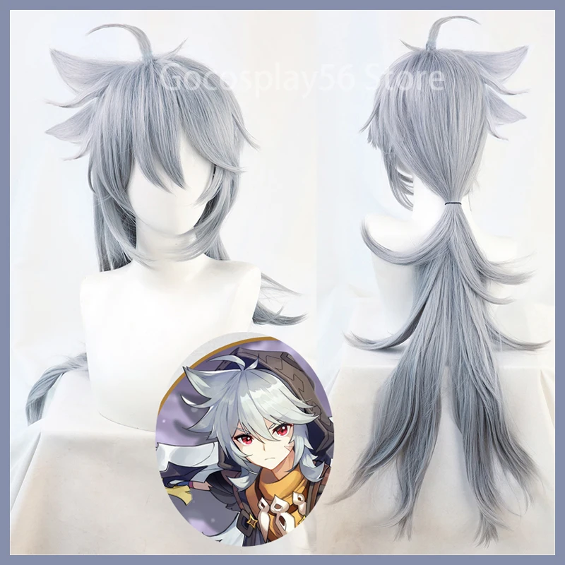 Парик Genshin Impact Razor Wolf Косплей серо-голубые длинные термостойкие волосы для взрослых для ролевых игр на Хэллоуин