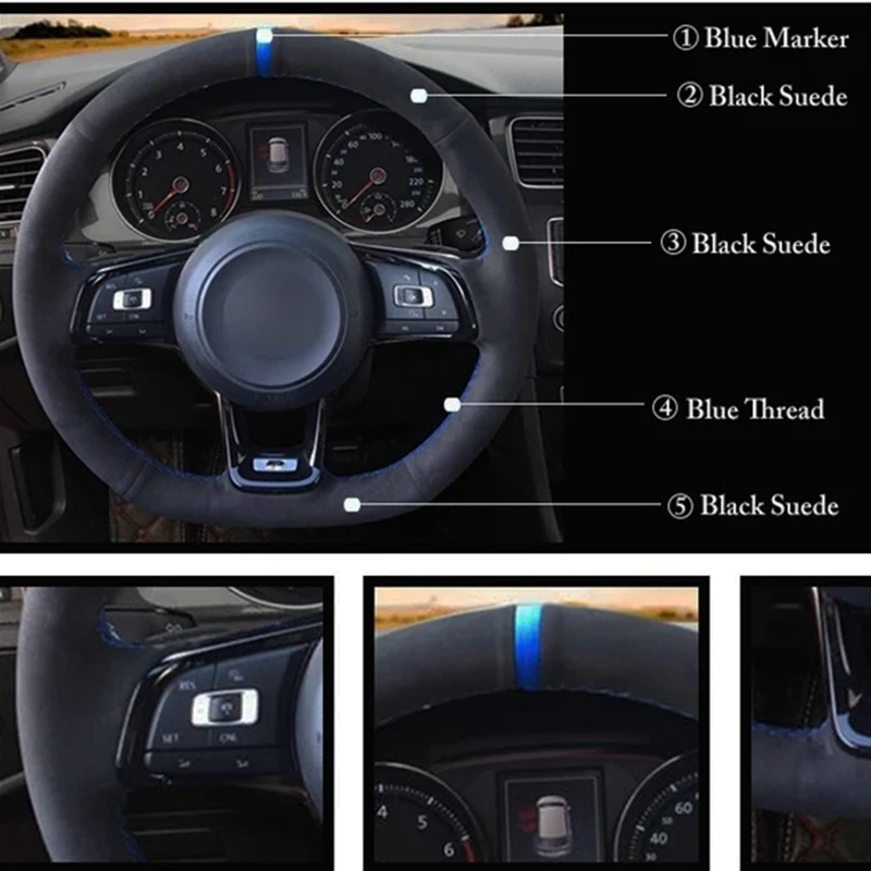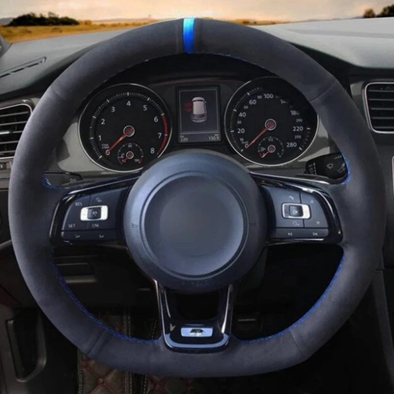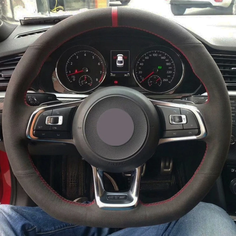 Нескользящая Мягкая черная замша чехол рулевого колеса автомобиля для Volkswagen Golf 7 GTI R MK7 VW Polo GTI Scirocco 2015 2016