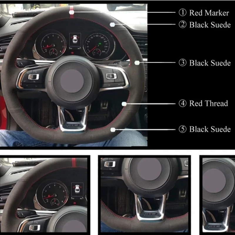 DIY ручной работы черная замша красный маркер чехол рулевого колеса...