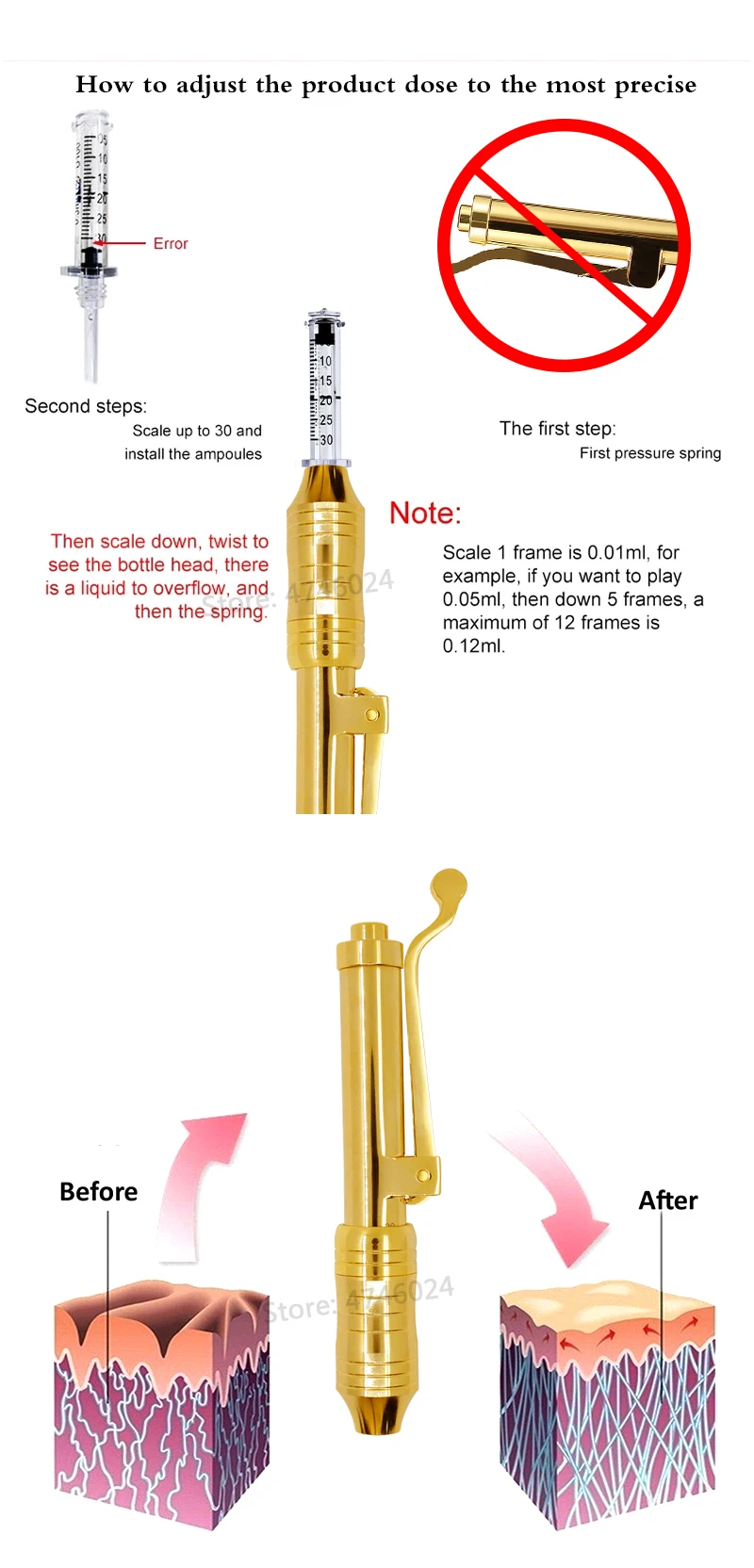 0,3 мл Золотой Нержавеющая сталь гиалуроновой ручка анти-старения Сыворотки впрыска Объем резервуара для лекарственных средств для крем для лица против морщин и подъема губ и Lossing Вес