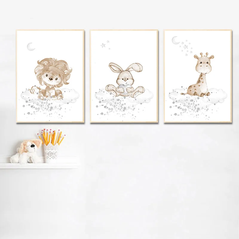 Картина с жирафом, Кроликом, слоном, детская, плакат для детской