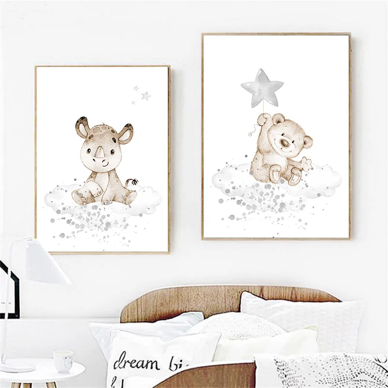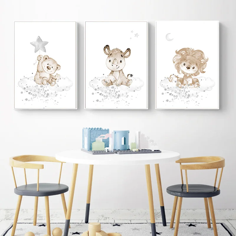 Картина на холсте для детской комнаты, с изображением животных, пин...