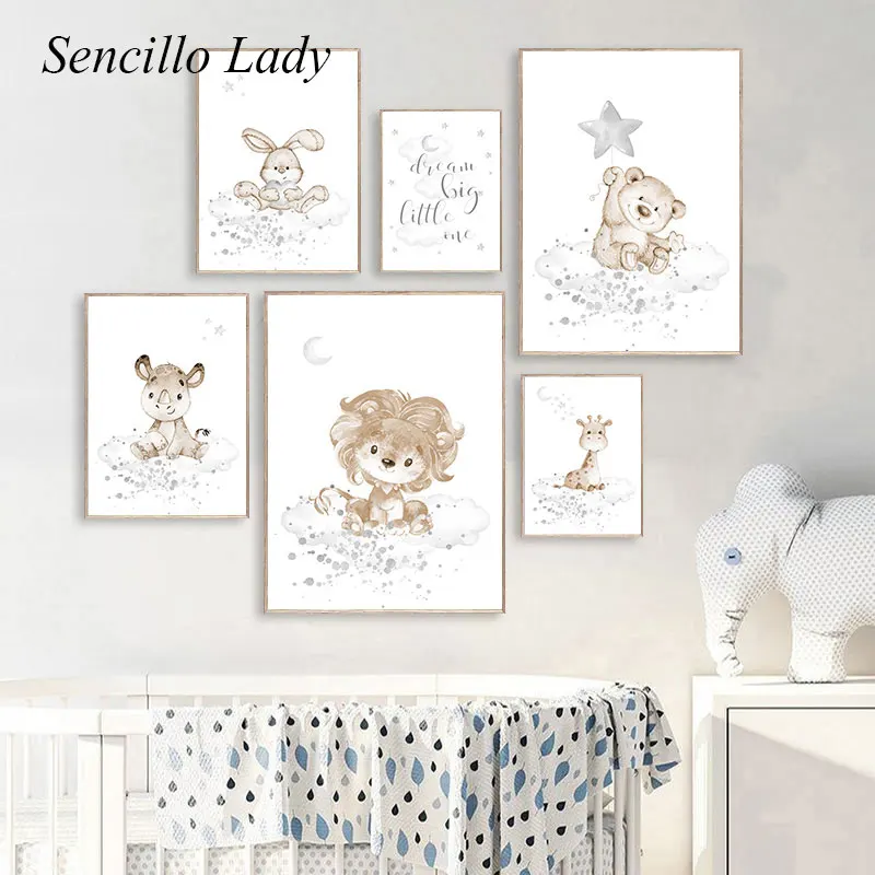 Милый Постер для детской комнаты с животными, слон, лев, леопард, м...