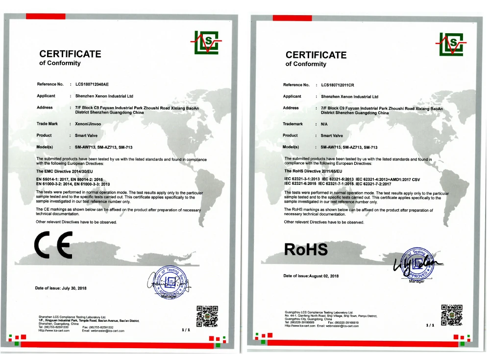 Умные клапаны сертифицированы CE ,ROHS и FCC
