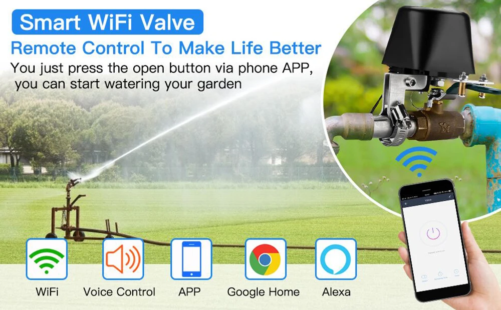 Умный клапан Wi-Fi, совместимый с Amazon Alexa и Google Home Assistant, позволяет отключить/включить водяной клапан через ваш голос