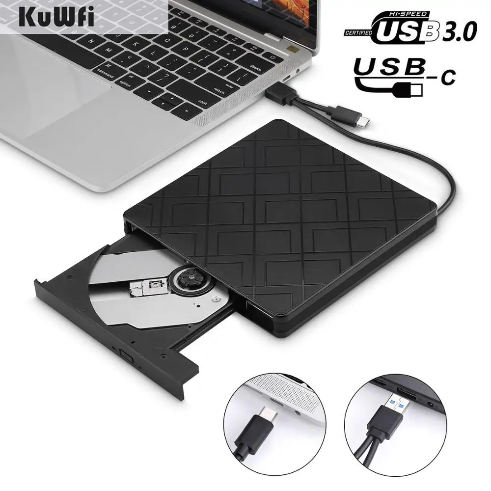 KuWFi Внешний DVD привод USB3.0 Тип C DVD RW CD Rewriter горелка Портативный Оптический привод плеер для Windows 10 7 8 XP Mac OS