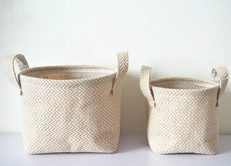 Плетеный цветочный горшок из джутовой ткани, Настольный ящик для хранения из хлопка и льна, органайзер для всякой всячины, корзина для белья