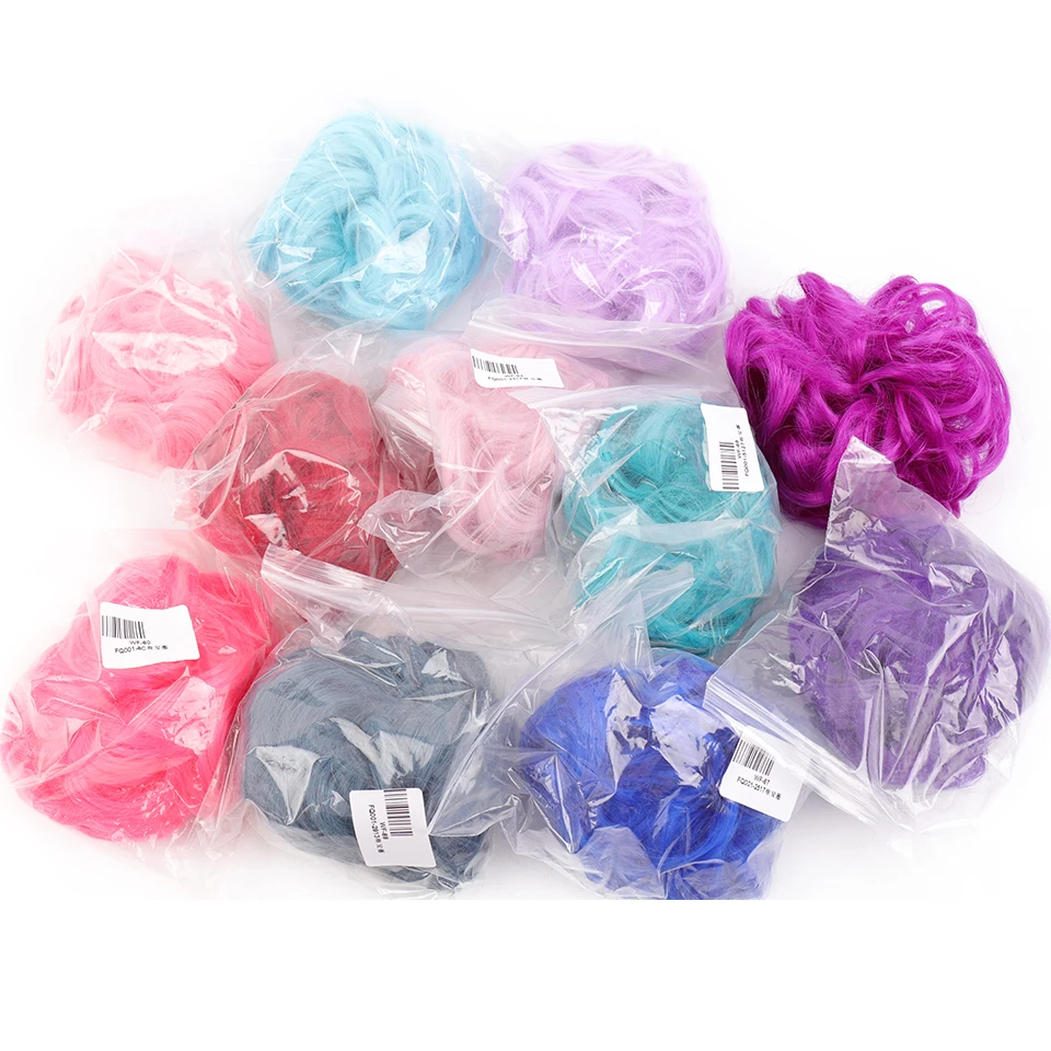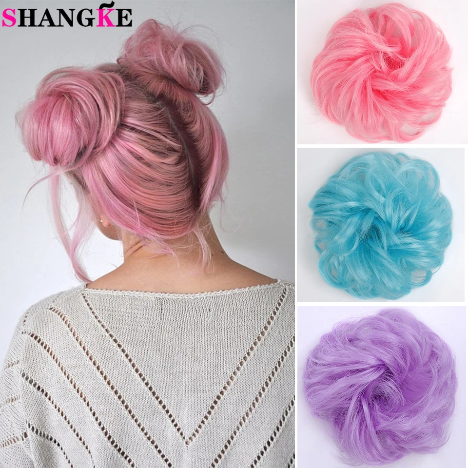 Синтетический шиньон для девочек SHANGKE, красный, розовый, фиолетовый, синий, зеленый, вьющийся пучок для волос, детский валик для пончиков, термостойкие накладные волосы