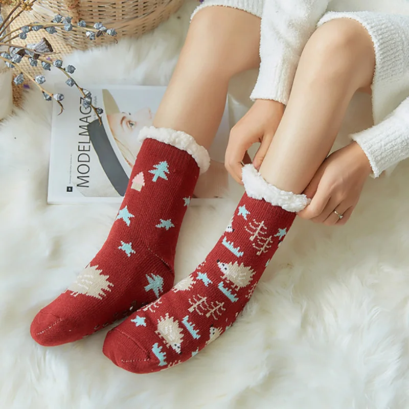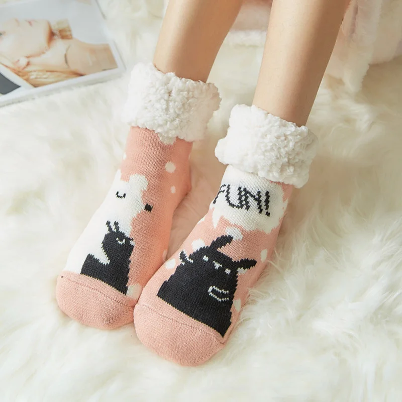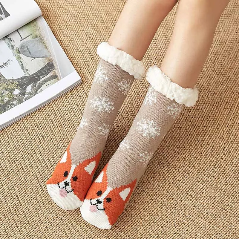 Зимние женские рождественские носки, теплые плотные нескользящие носки для пола с принтом животных, шлепанцы для сна в стиле Харадзюку для девочек, забавный подарок 2020