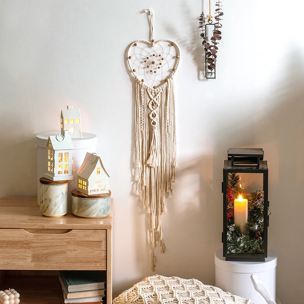Богемное сердце Мандала макраме настенный гобелен Скандинавское украшение для дома, спальни, гостиной тканый вручную Рождественский орнамент подарки