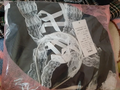 ну я даже не знаю... лента завятывающаяся на талии пришита криво, сама она с затяжками. какие то непонятные штуки которые для ног слишком маленькие, а с рук спадают. На картинке сам костюм длиннее, а на деле ну слииишком коротко. а вот за чулочки лайк, они неплохие.