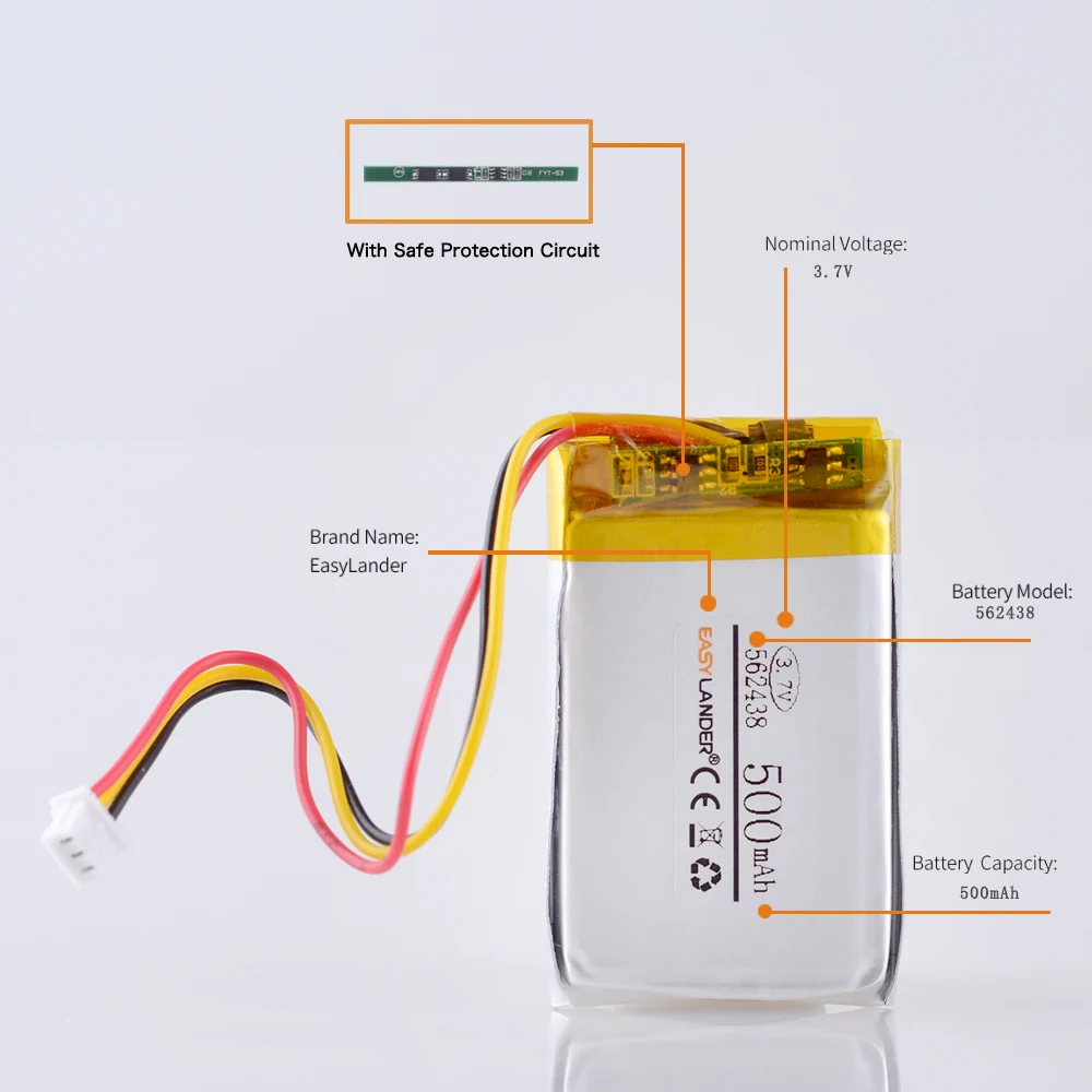 3-жильный литий-ионный аккумулятор 3,7 в 500 мА ч 562438, для mp3 mp4 DVR Sho-me Combo 1 Shome combo A1 602535 552535