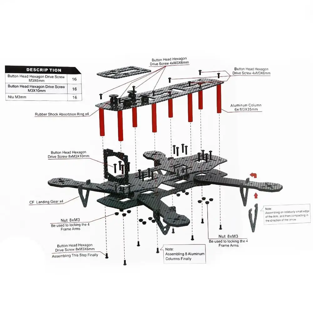 Комплект рамок для квадрокоптера Droyuke ZMR250 250 250 мм из углеродного волокна с рукояткой толщиной 3 мм для гоночного дрона QAV250 FPV