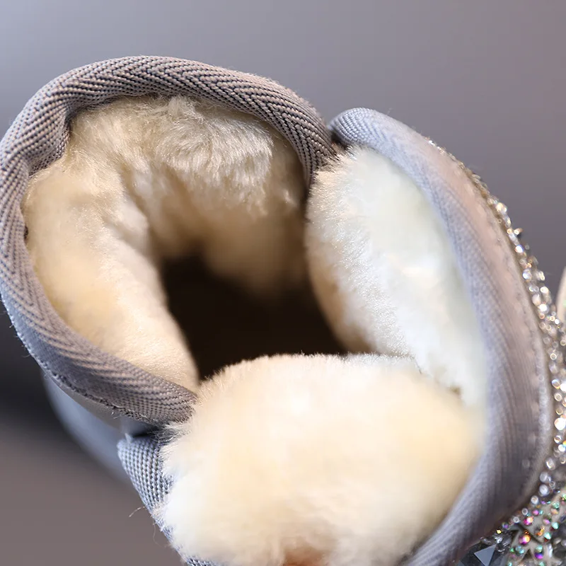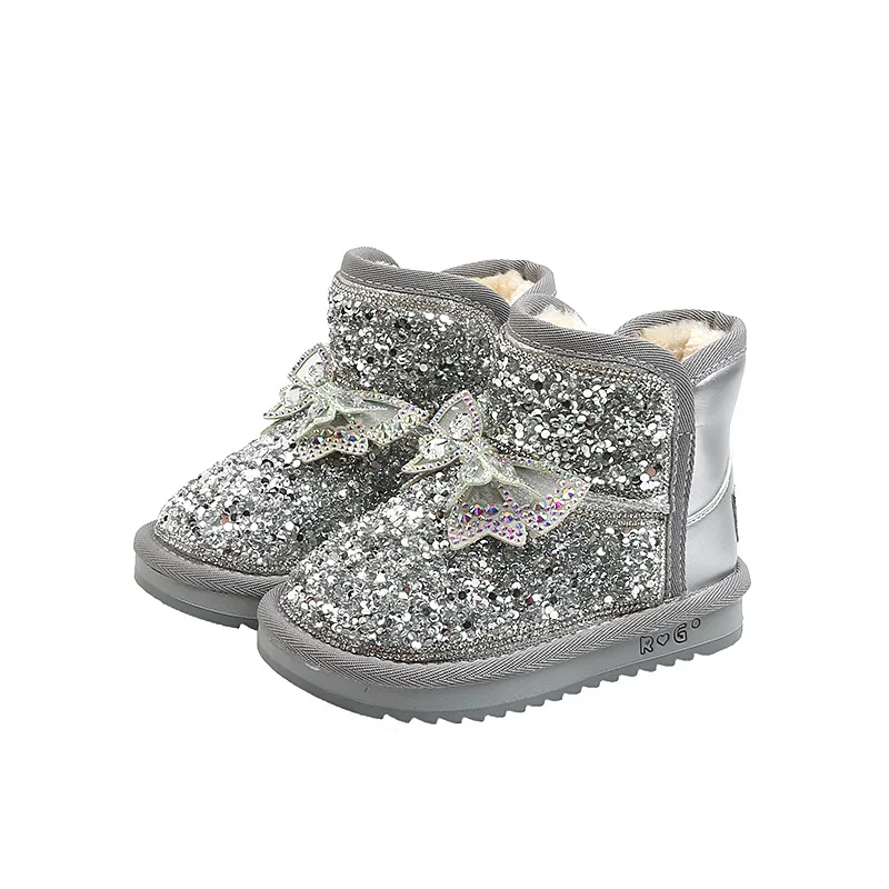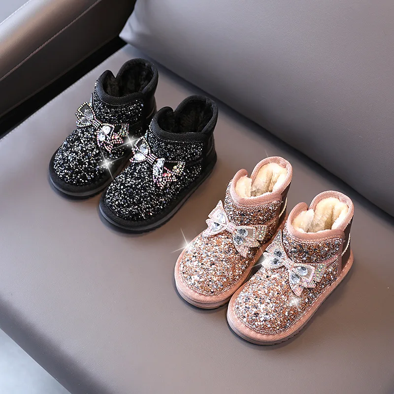 Зимние ботинки для девочек, новинка 2020, зимняя детская обувь, детская теплая хлопковая обувь со стразами и бантом, обувь принцессы