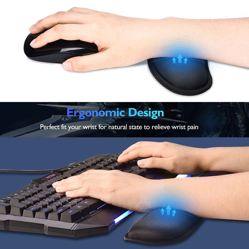 Коврик для мыши на запястье, набор для поддержки запястья, пена с эффектом памяти, эргономичная, нескользящая офисная игровая мышь и клавиатура на запястье